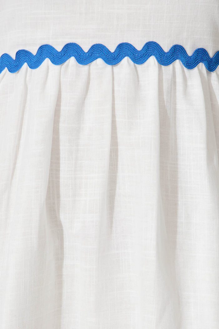 Miami Midi Dress In White With Blue Ric Rac Cotton