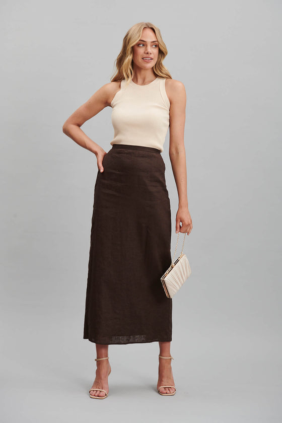 Milah Maxi Skirt In Chocolate Brown Pure Linen
