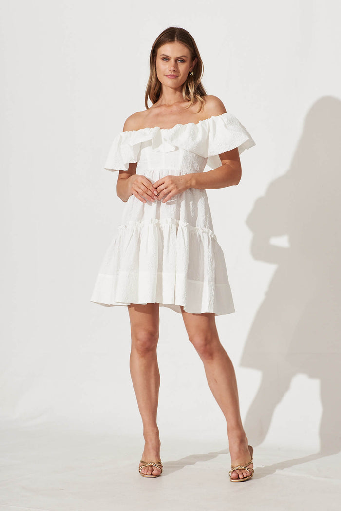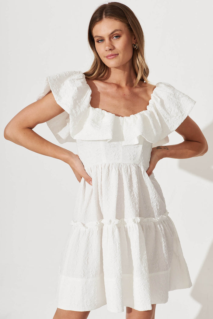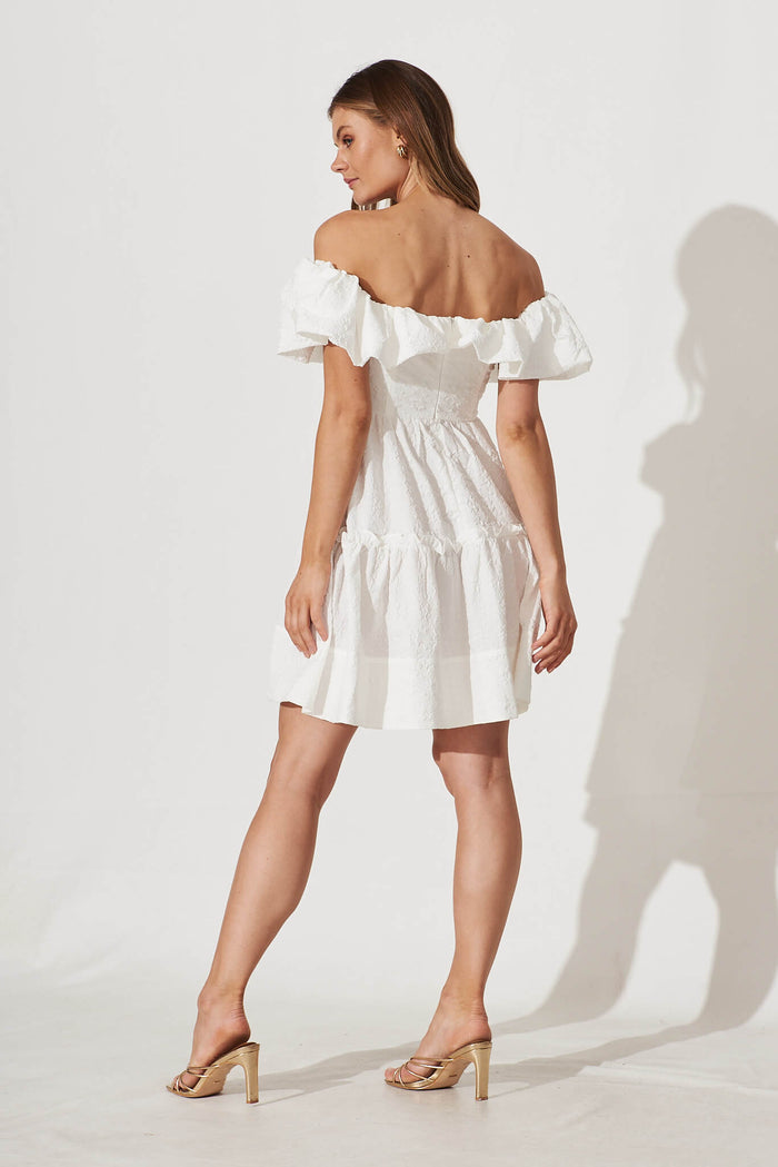 Turn heads at your next occasion with our Moonlight Dress! This flirty and playful dress can be worn on or off-the-shoulder. Its the perfect piece for a night out. The ruffle detail adds a touch of femininity, while the bodycon silhouette accentuates your curves in all the right places. Style is with a strappy heel and statement earrings to match.