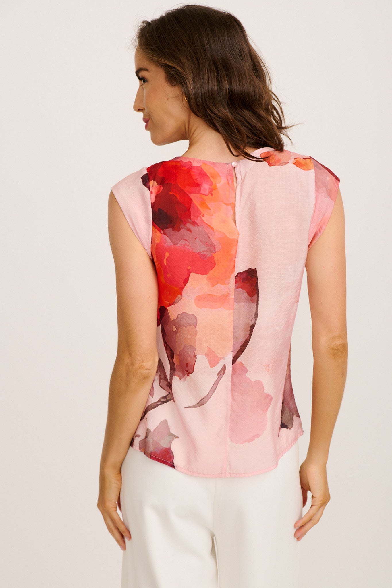 The Moonshadows Top in Pink with Tangerine Floral brings an artful flourish to casual and occasion dressing alike. Its cheerful floral palette feels fresh and optimistic, while the relaxed shape offers a polished yet effortlessly comfortable silhouette.