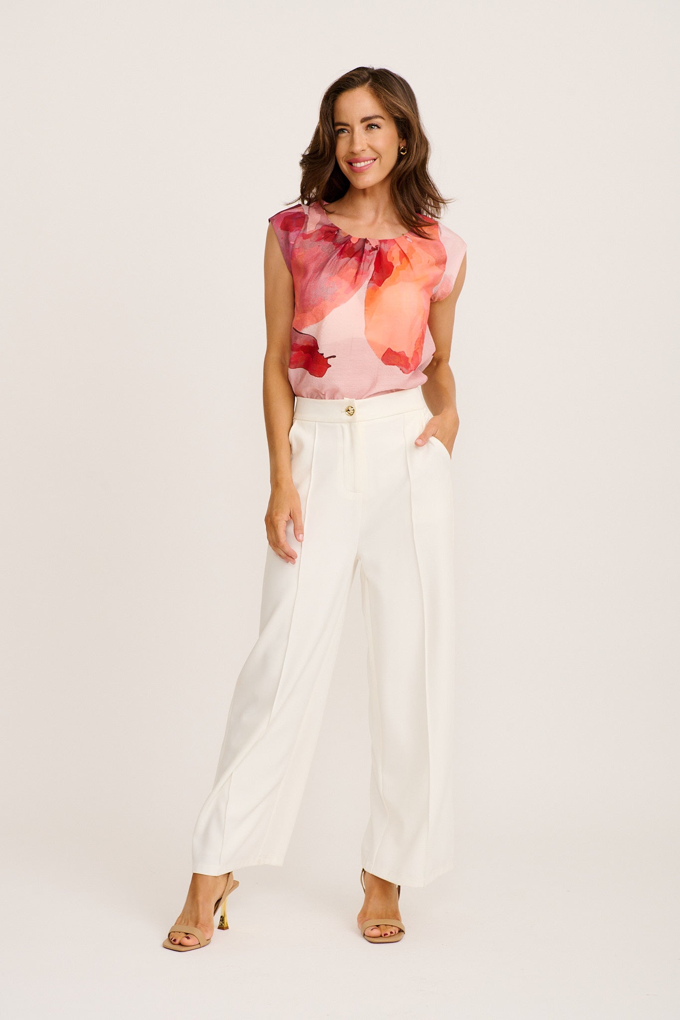 Cut from a lightweight, breathable viscose‑polyamide blend, this top sits beautifully against the skin. The simple round neckline and cap sleeves keep the design clean, letting the vibrant print take centre stage. Pair with tailored pants or a flowing skirt for a versatile ensemble that transitions from daytime gatherings to evening plans with ease.