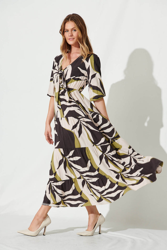 Make a statement in our Myla Maxi Dress this season. Features include a full tiered skirt, elastic waistband and bust tie. Team it up with your denim jacket, suede boots and flashy sunglasses.