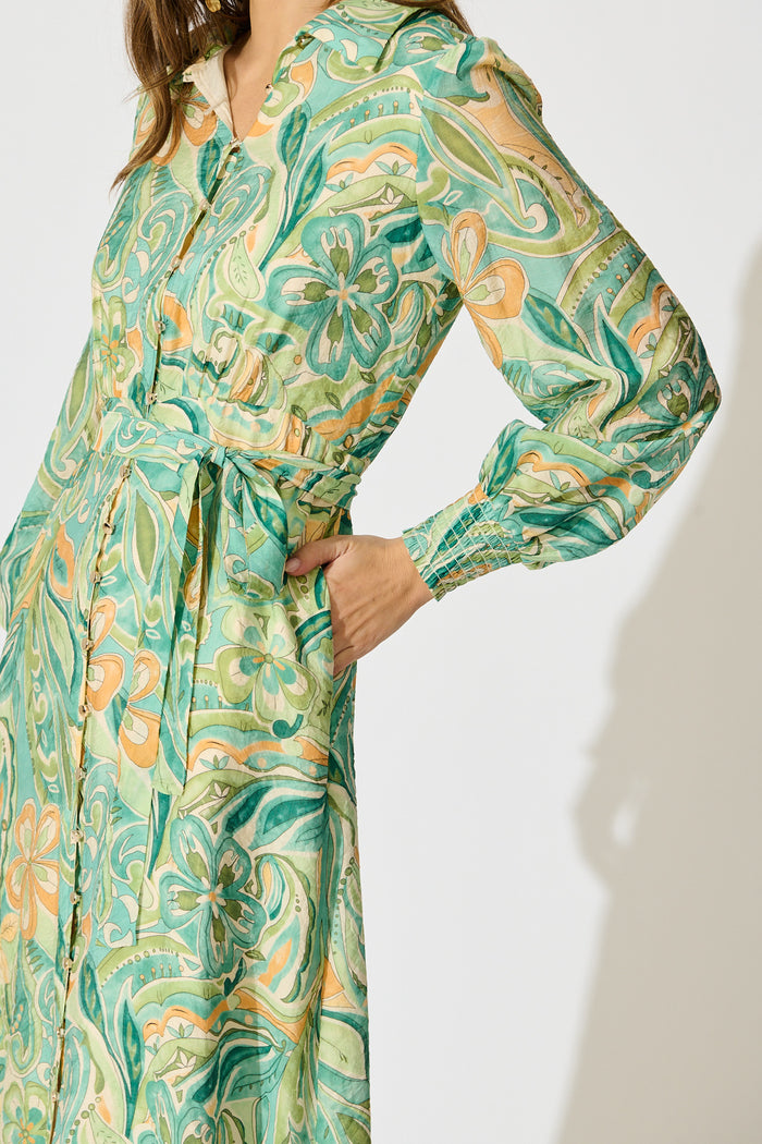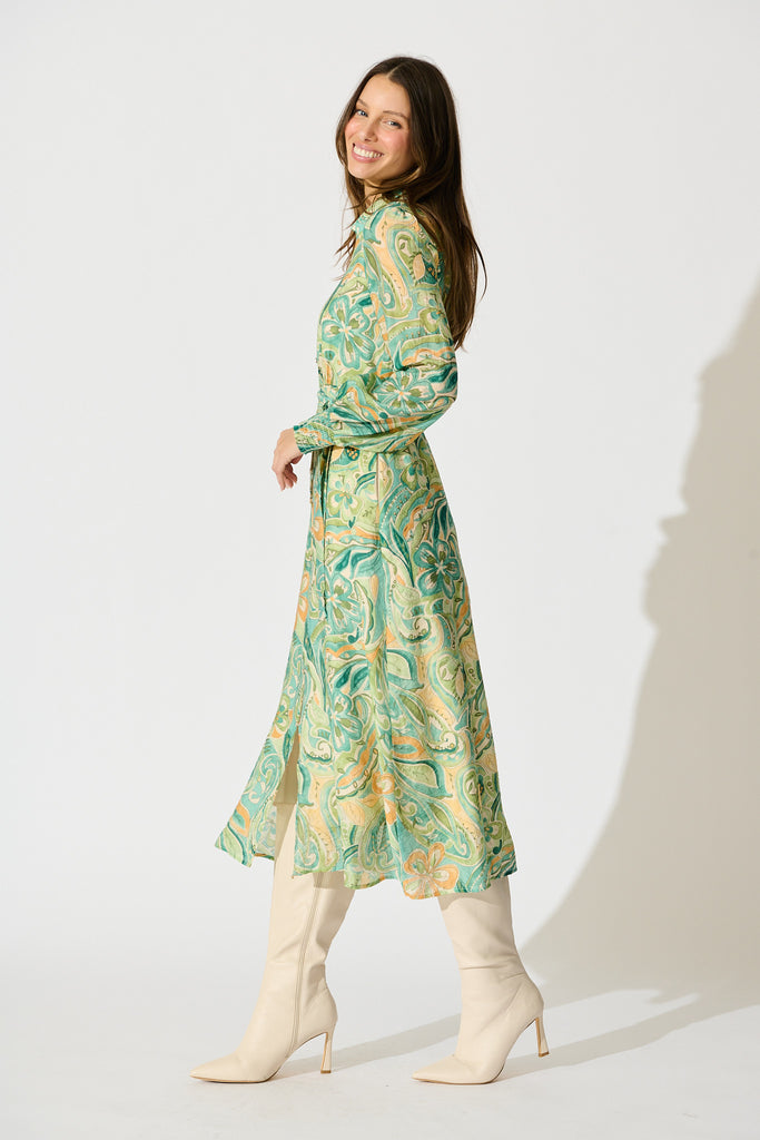 Mystic Mirage Midi Shirt Dress in Multi Green Print