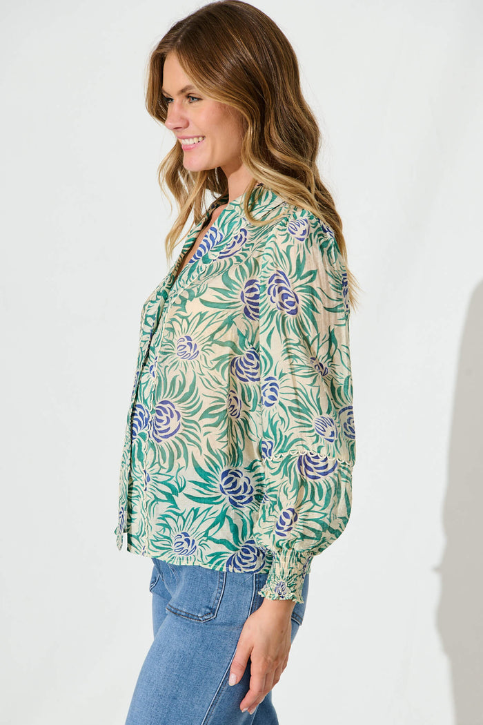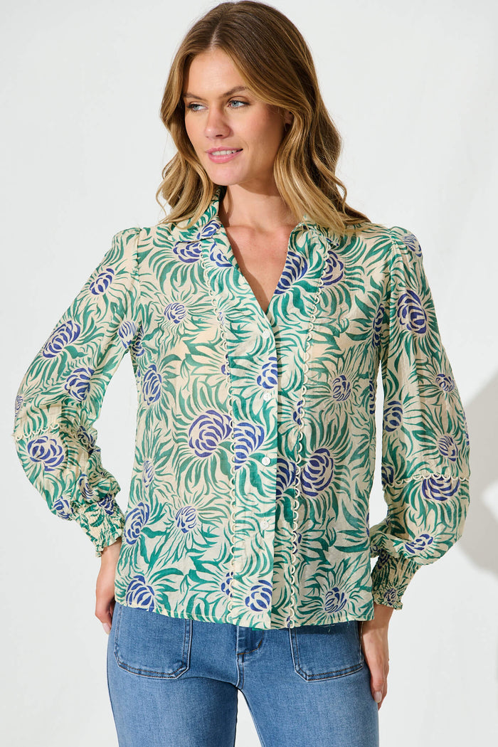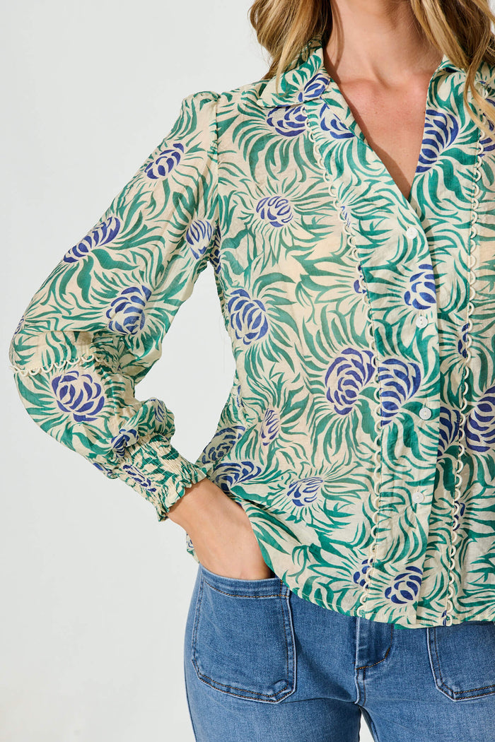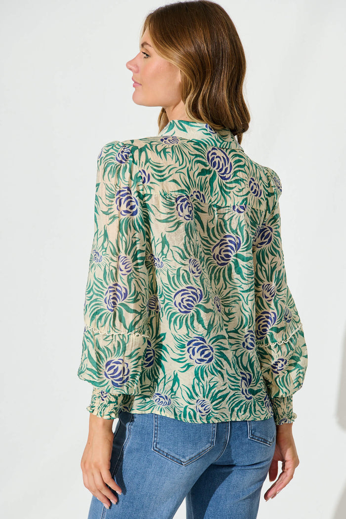 Nat Shirt In Cream With Green Flower