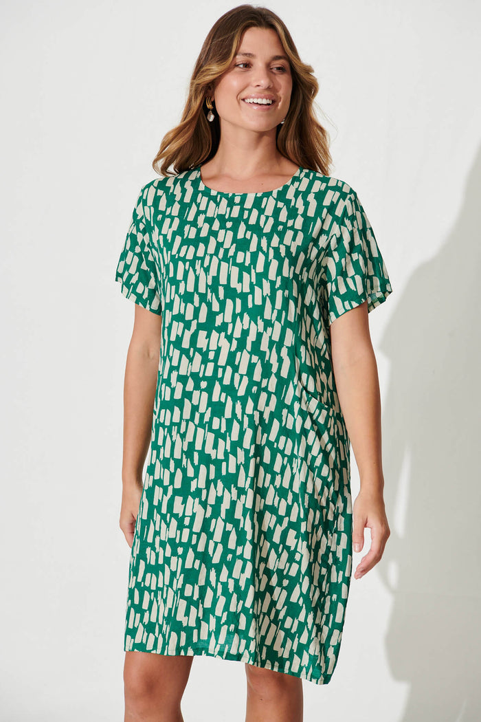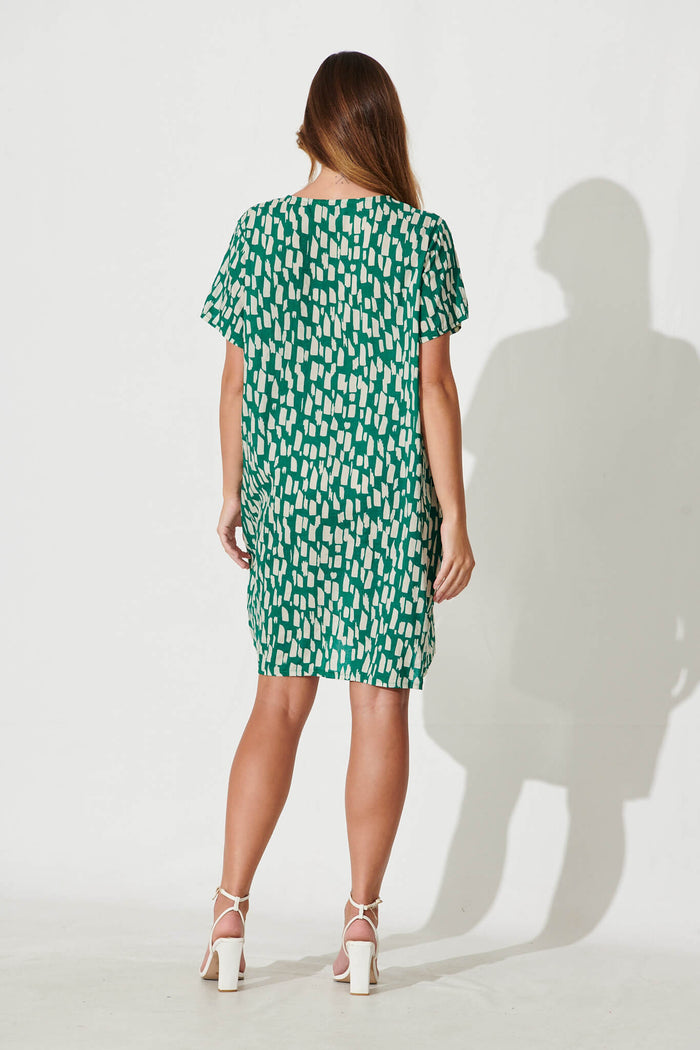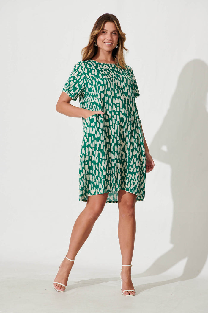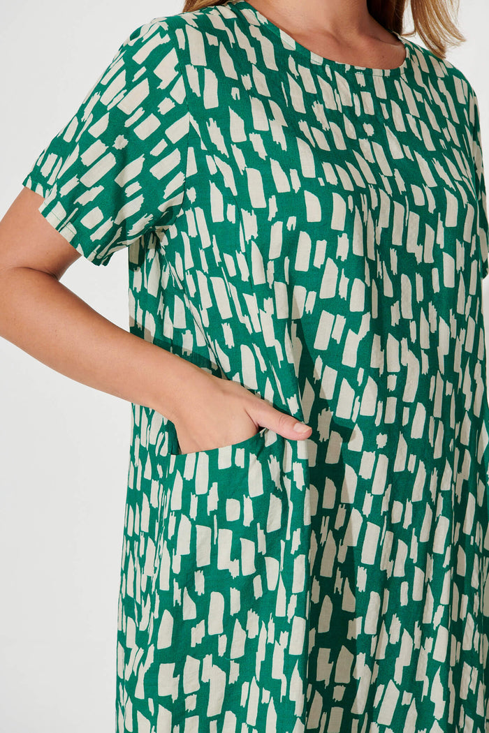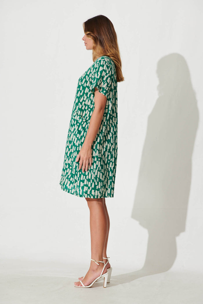 Nectar Smock Dress In Green And White Cotton Blend