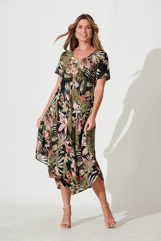 Nerissa Midi Dress In Black With Multi Floral