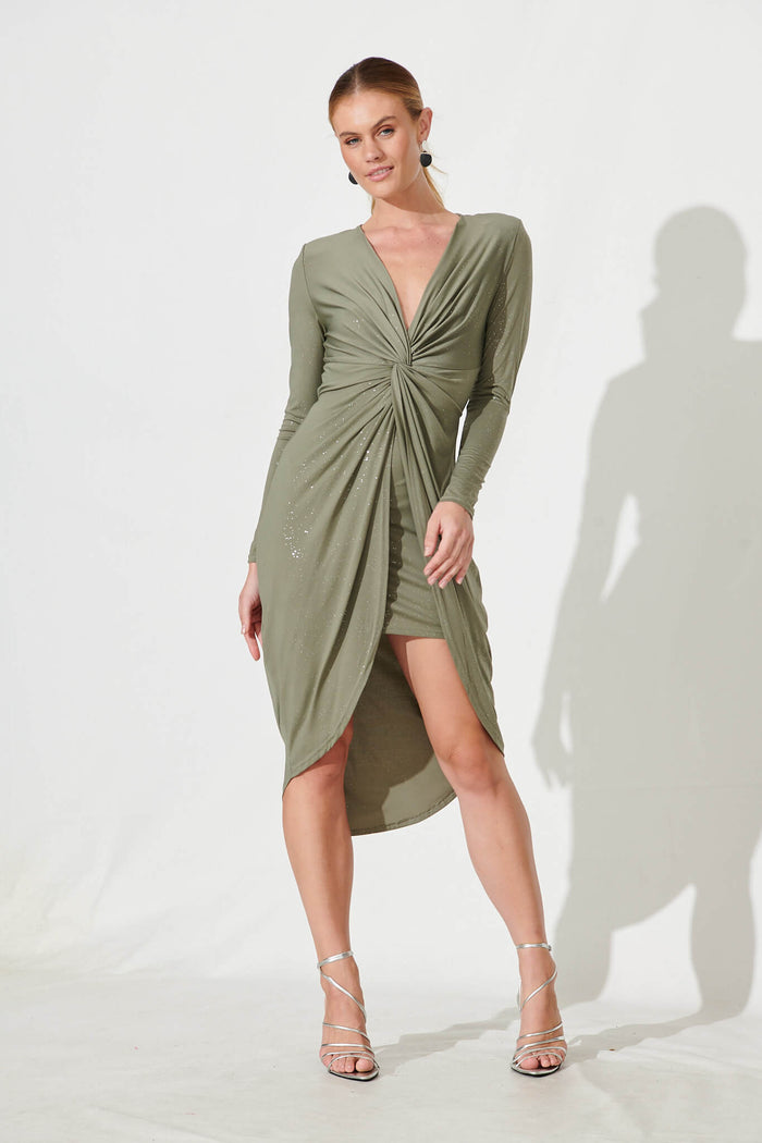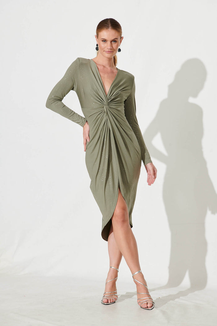 Nevis Midi Dress In Sage Glitter