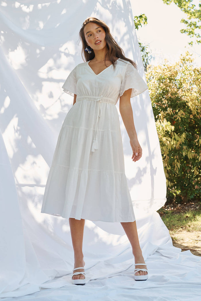 You'll be needing our Nolan Midi Dress on rotation this summer! This dress features a flattering V-neckline, short sleeves and a flowy tiered skirt that drapes beautifully on every body type. Pair it with sandals or boots & your favourite handbag, & you've got yourself a cute look for brunch with the girls!