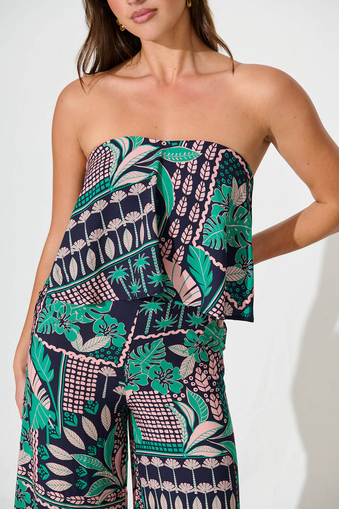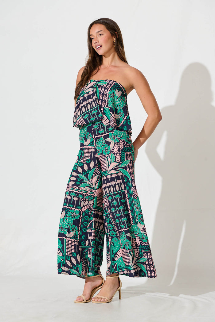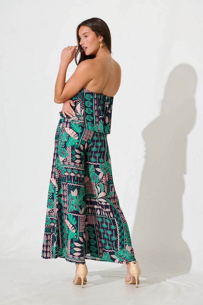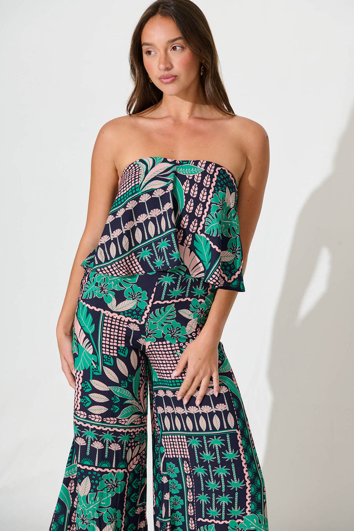North Jumpsuit In Navy With Green And Blush Patchwork