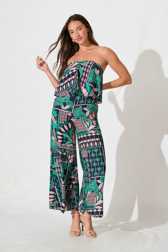 North Jumpsuit In Navy With Green And Blush Patchwork