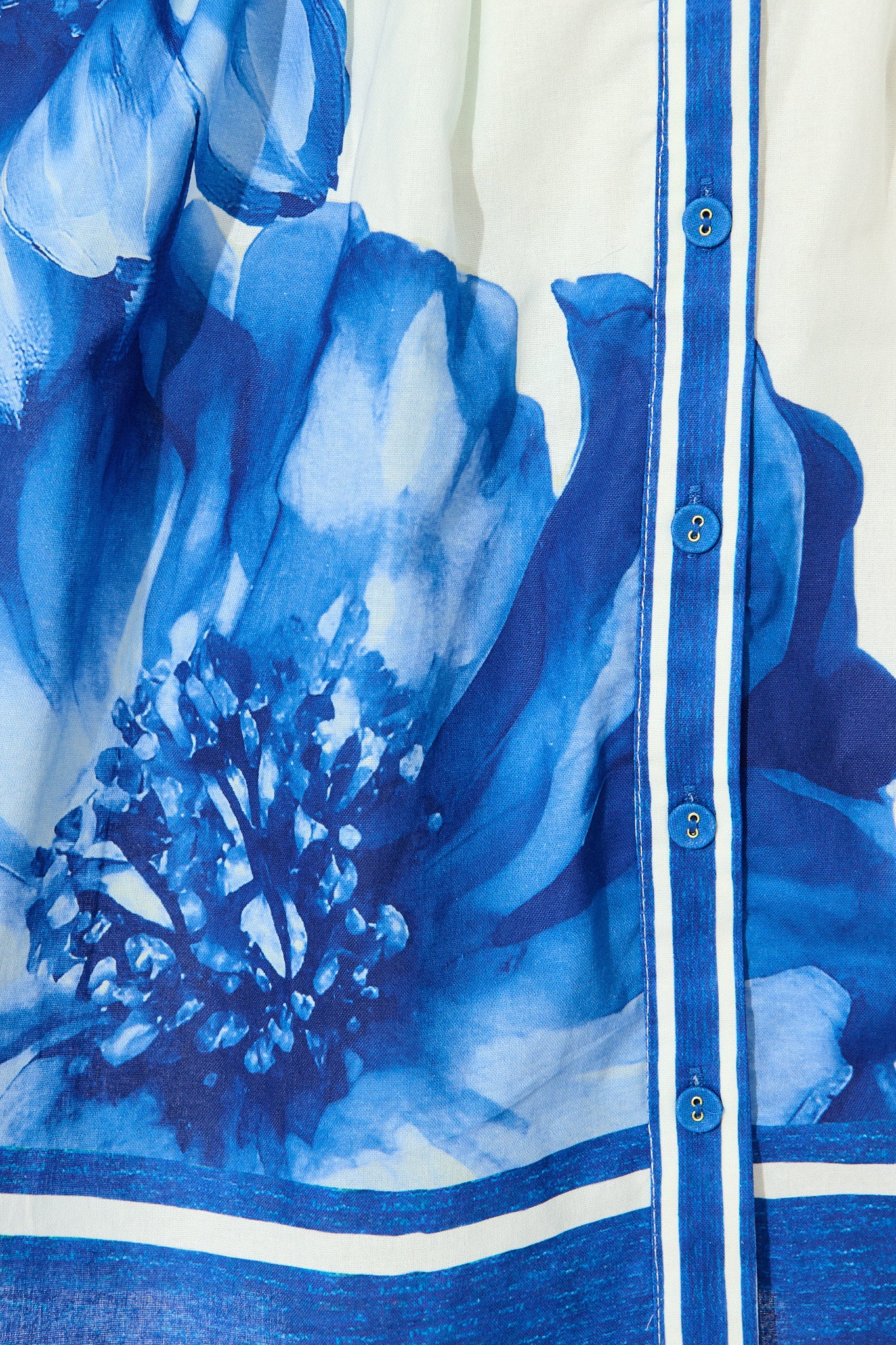 Nylen Shirt Dress in Blue Floral Border Print Cotton