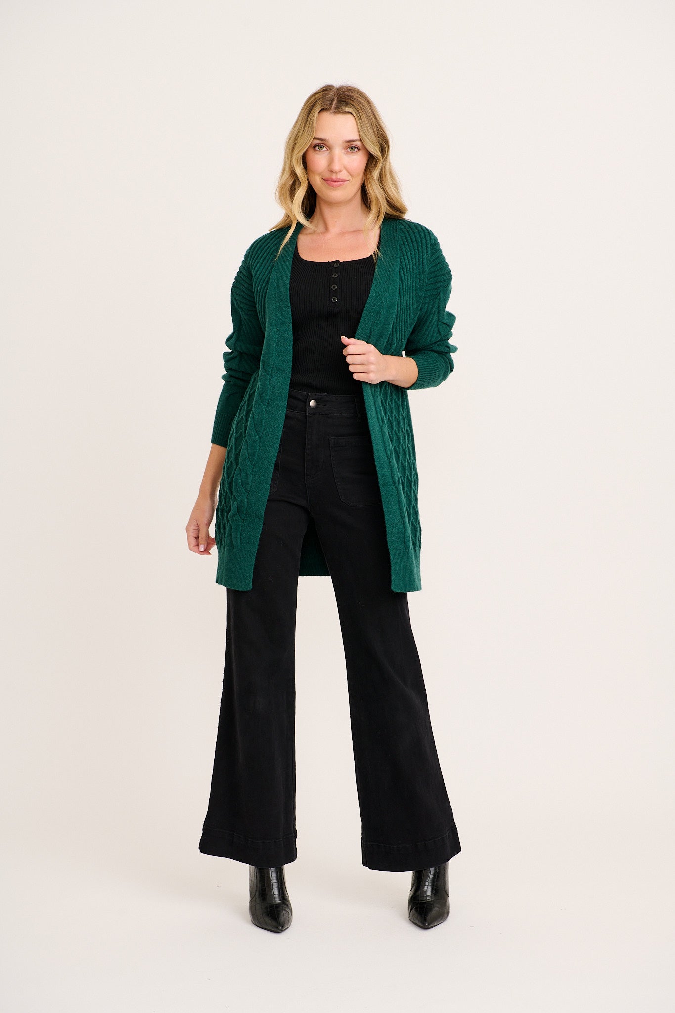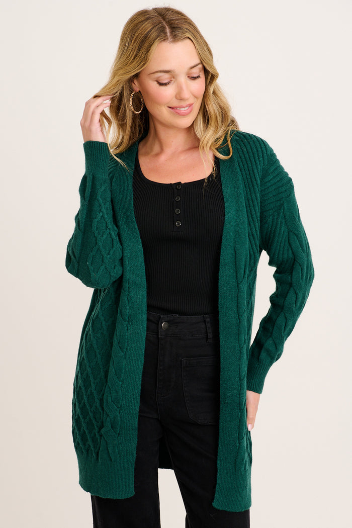 Okina Knit Cardigan In Emerald Wool Blend
