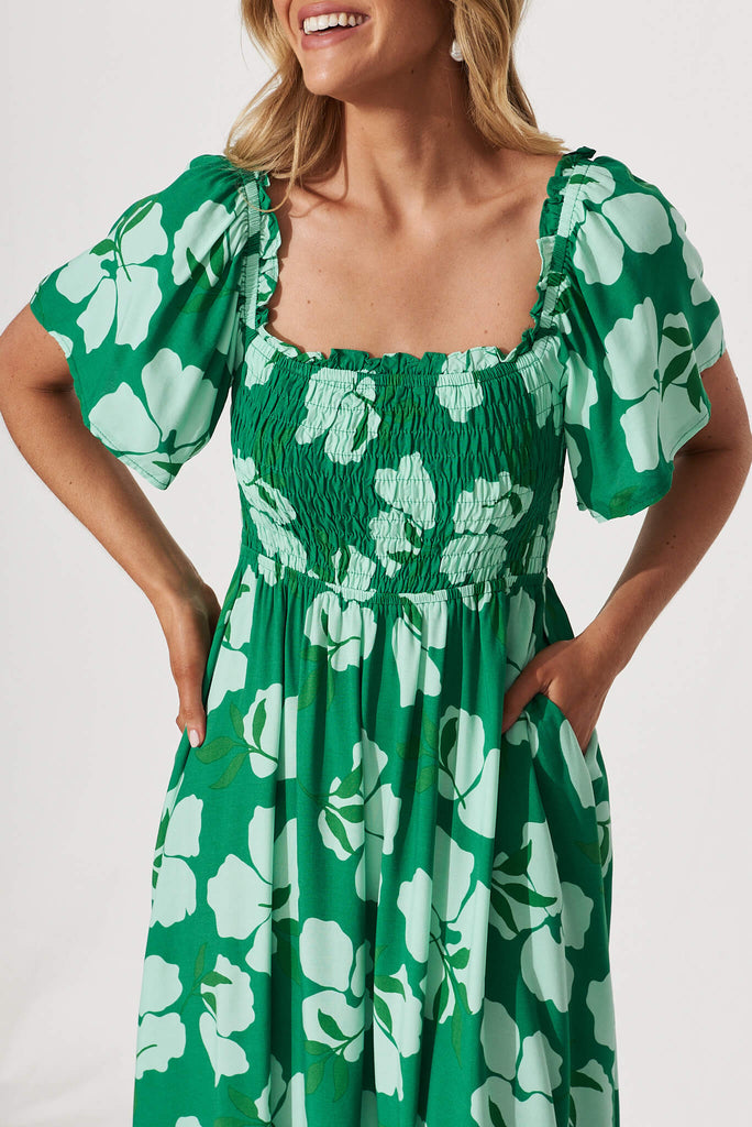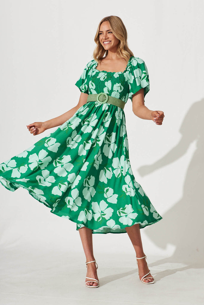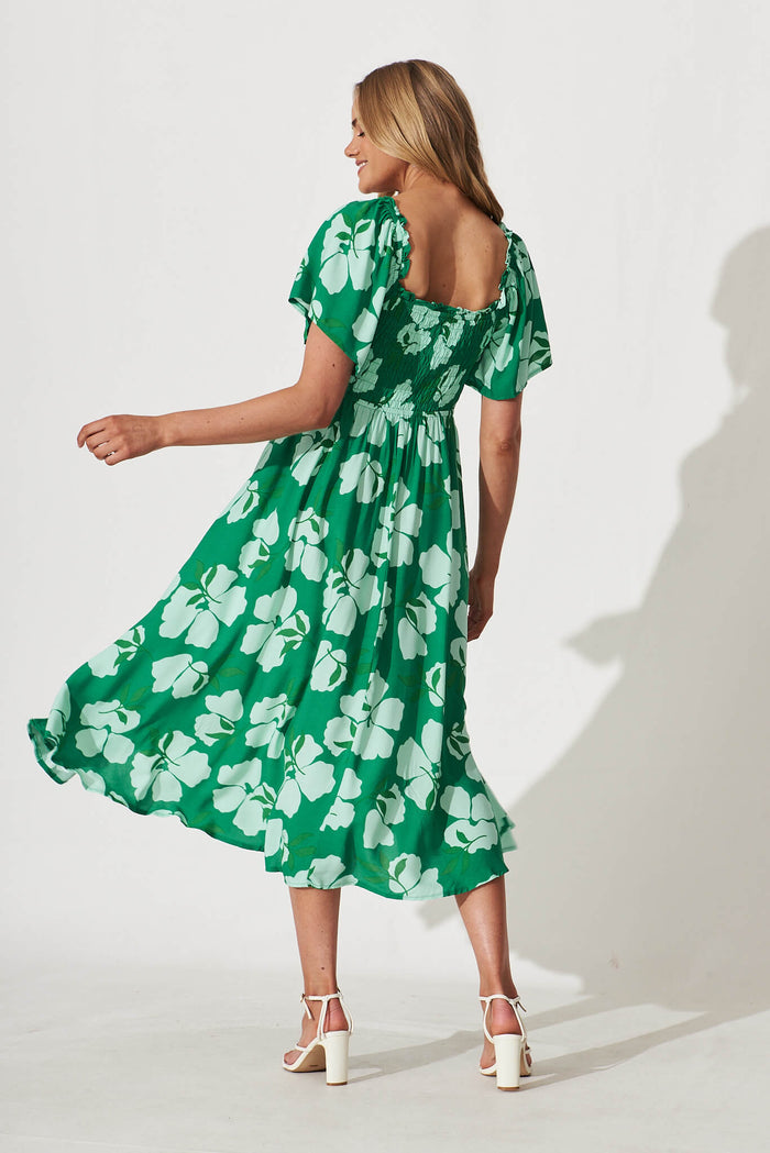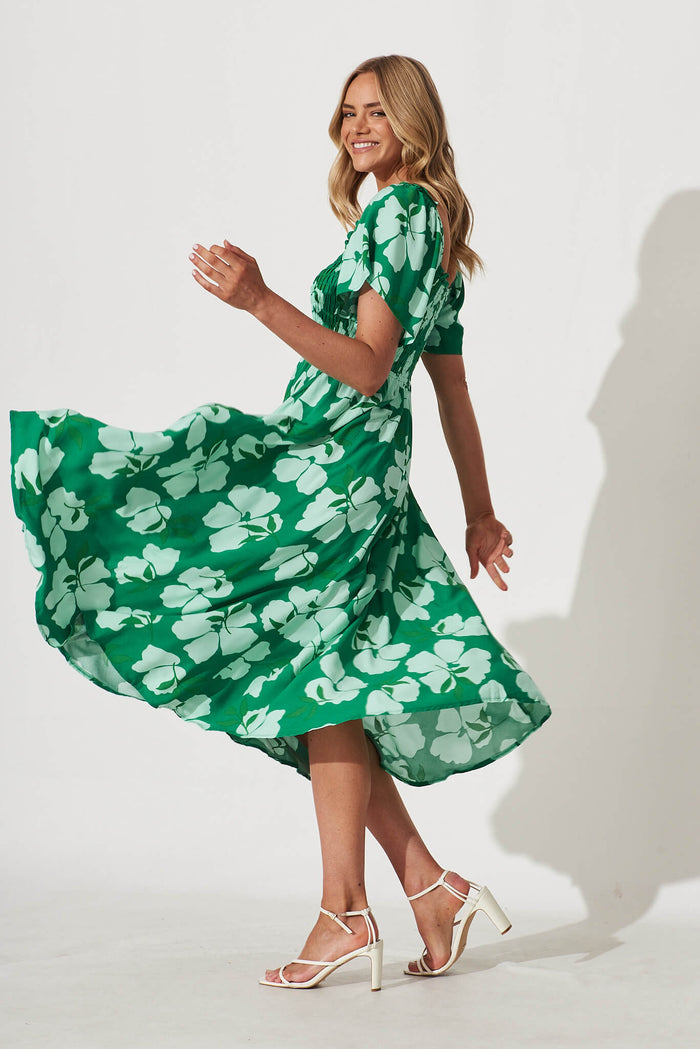 One Fine Day Midi Dress In Green Clover Leaf Print