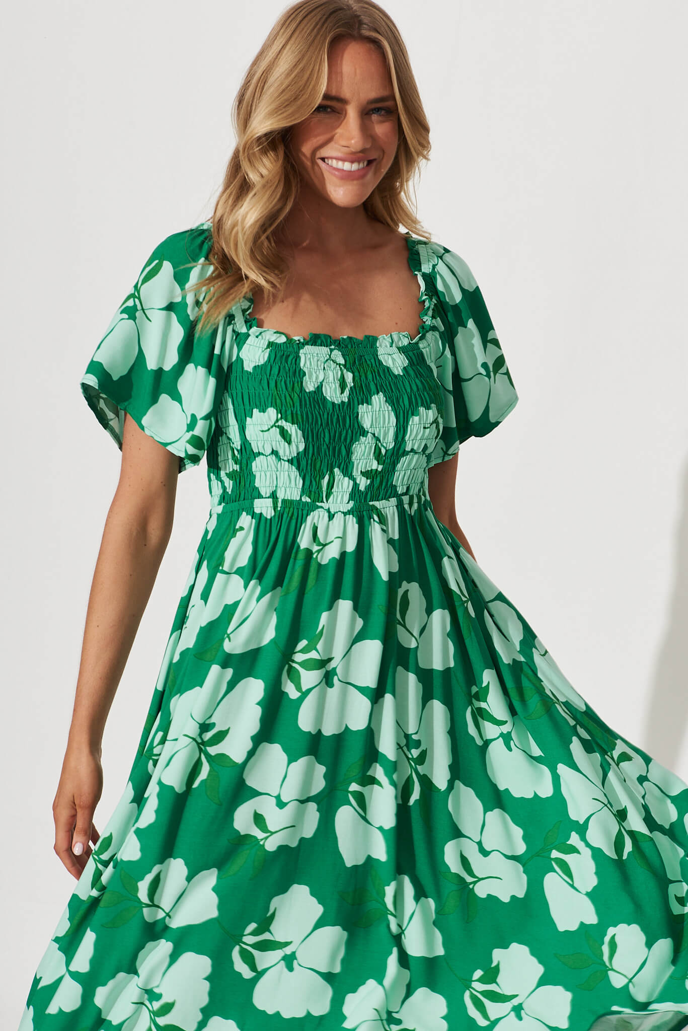 - Shirred bodice