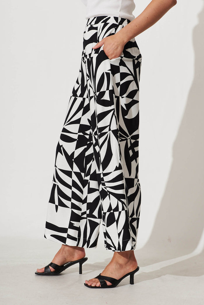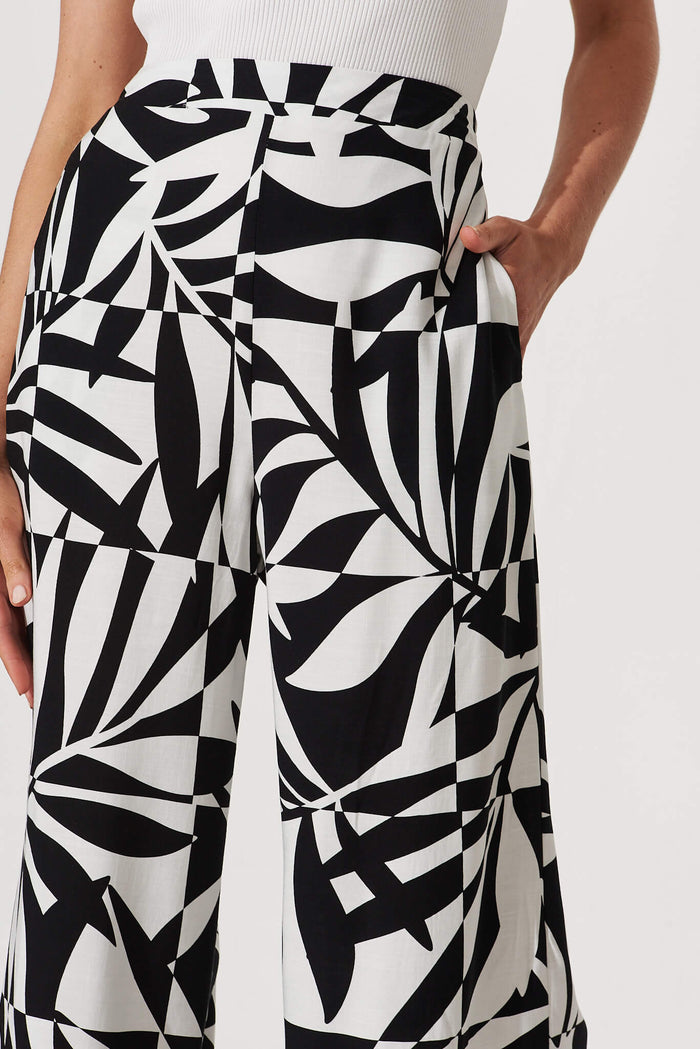 Origin Wide Leg Pant In Black And White Print