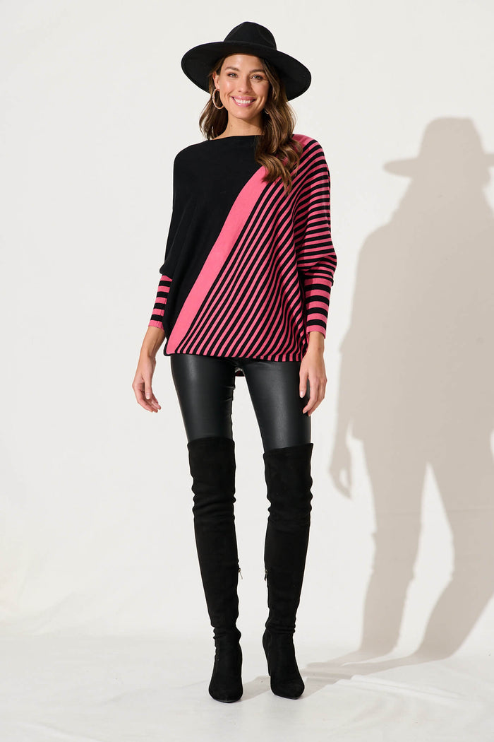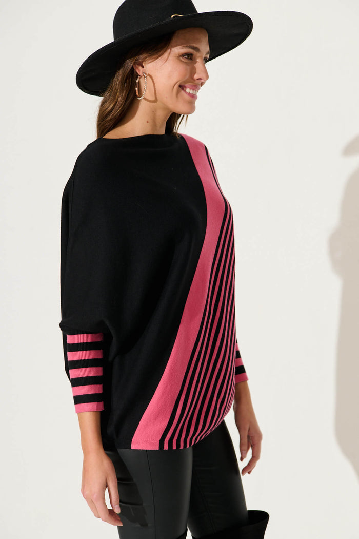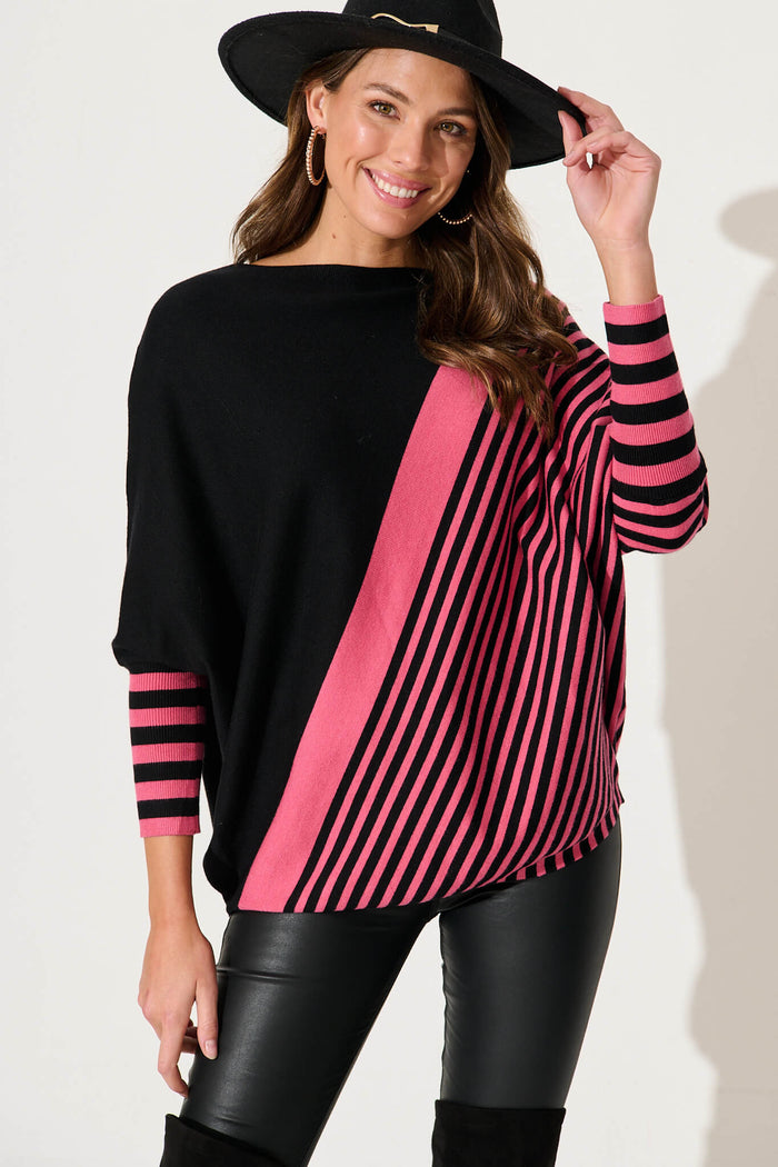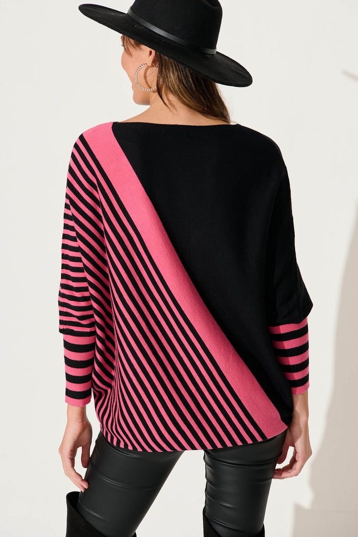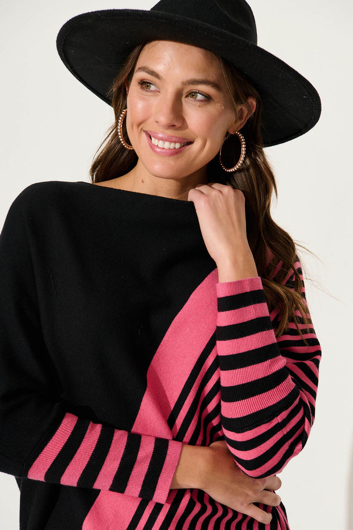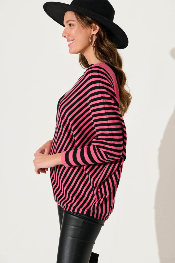 Orphelia Knit In Pink With Black Stripe