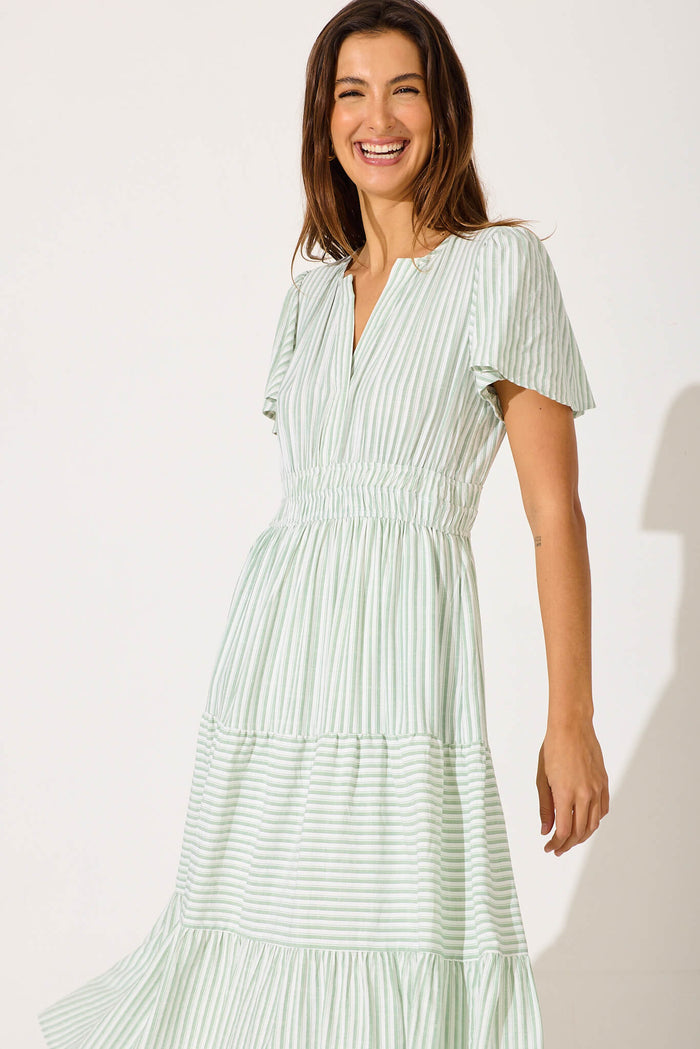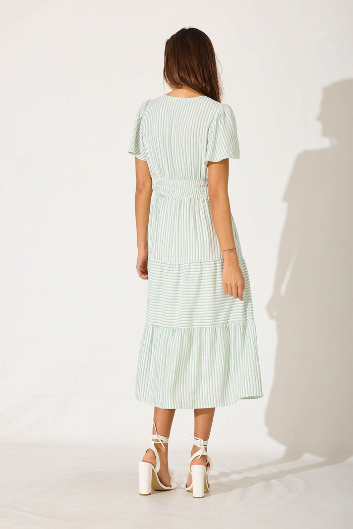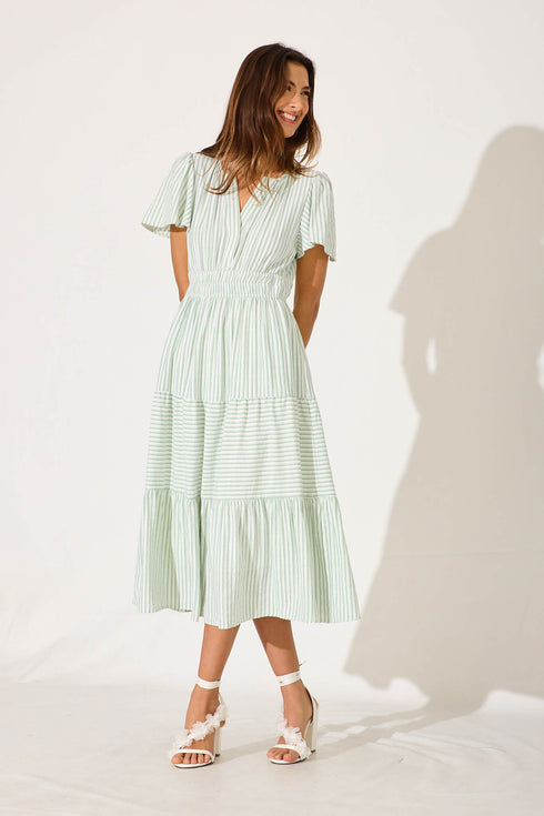 Palm Springs Midi Dress In Pale Green And White Stripe