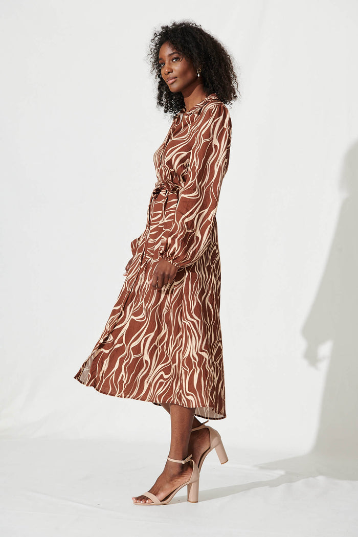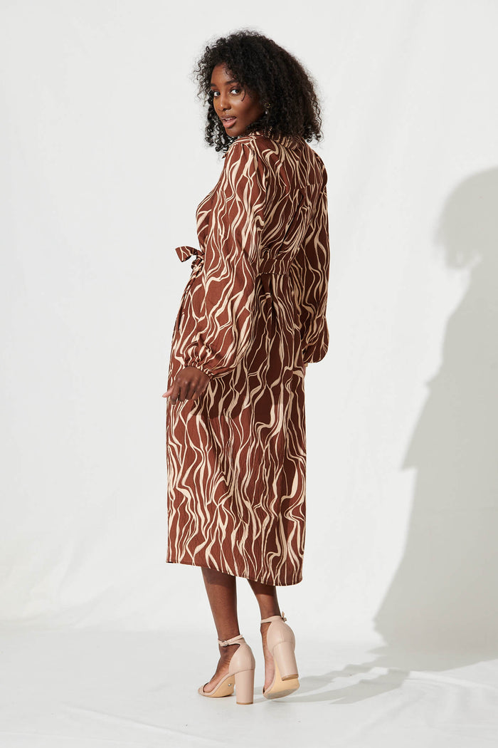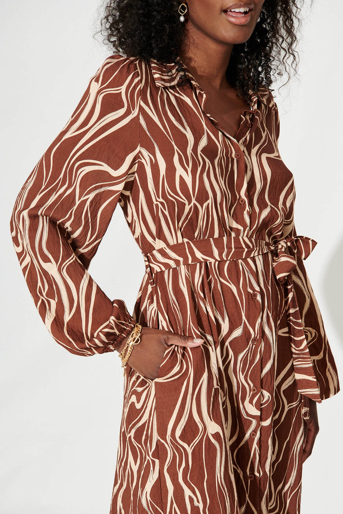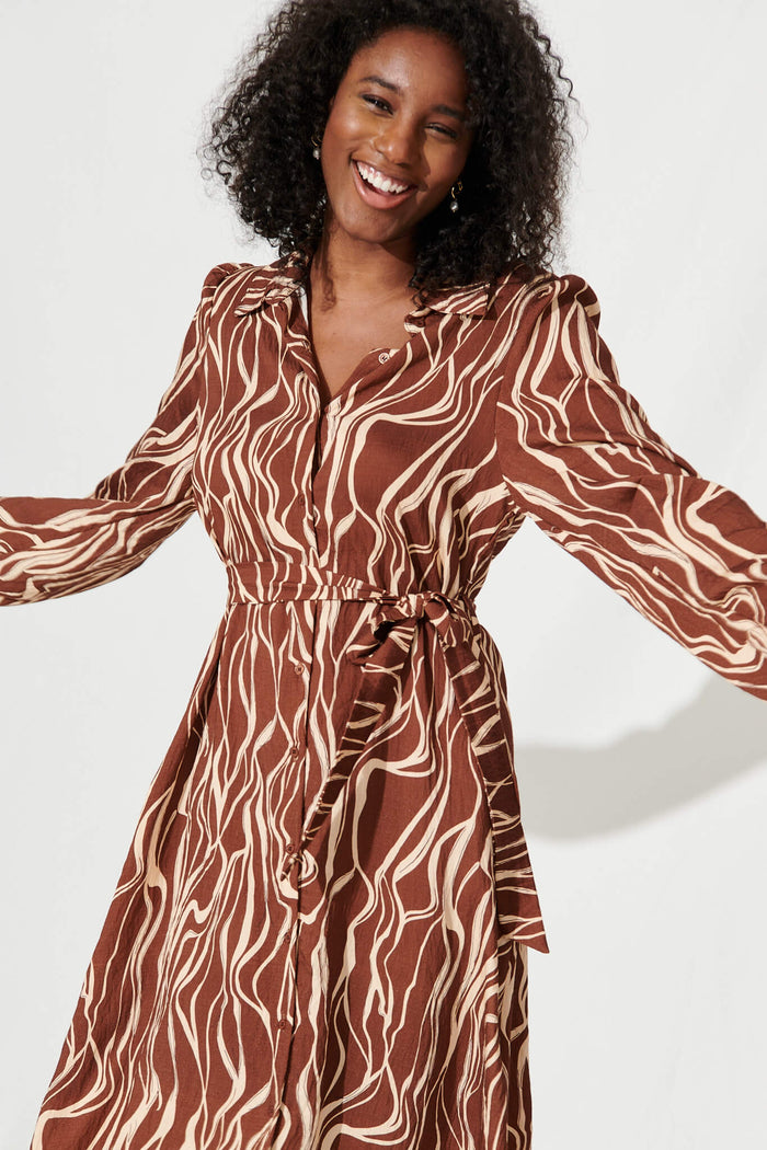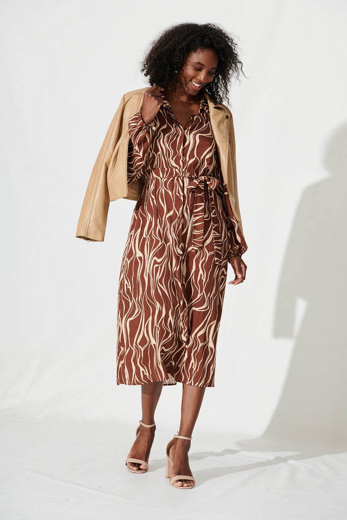 Pam Midi Shirt Dress In Chocolate And Champagne Cotton Blend