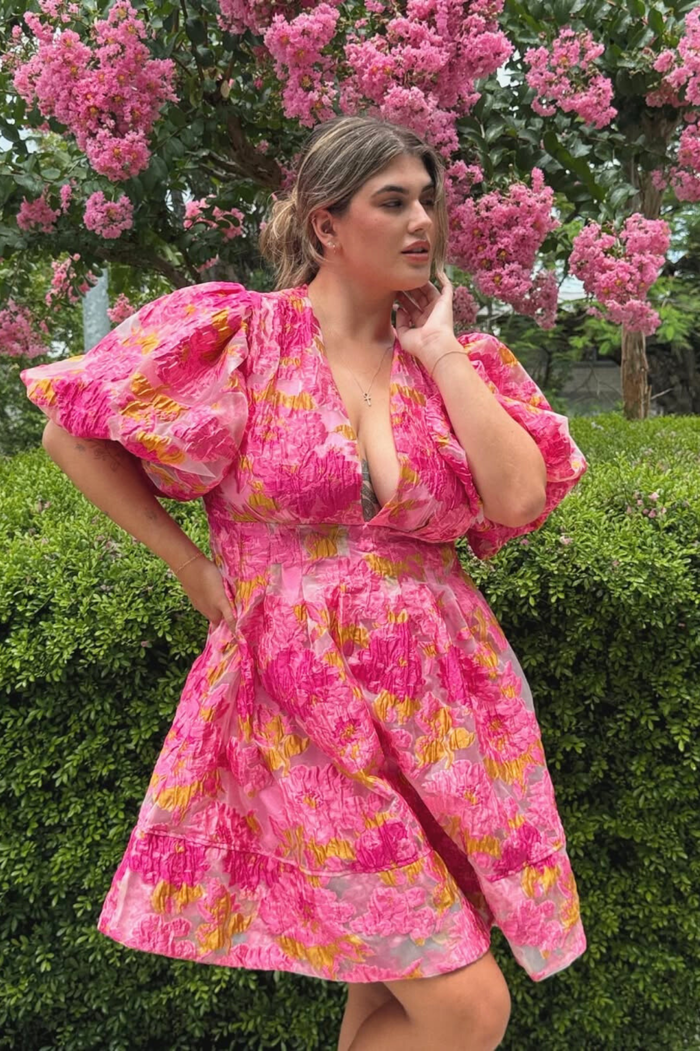 Paris Dreamer Dress In Pink Floral Organza Burnout