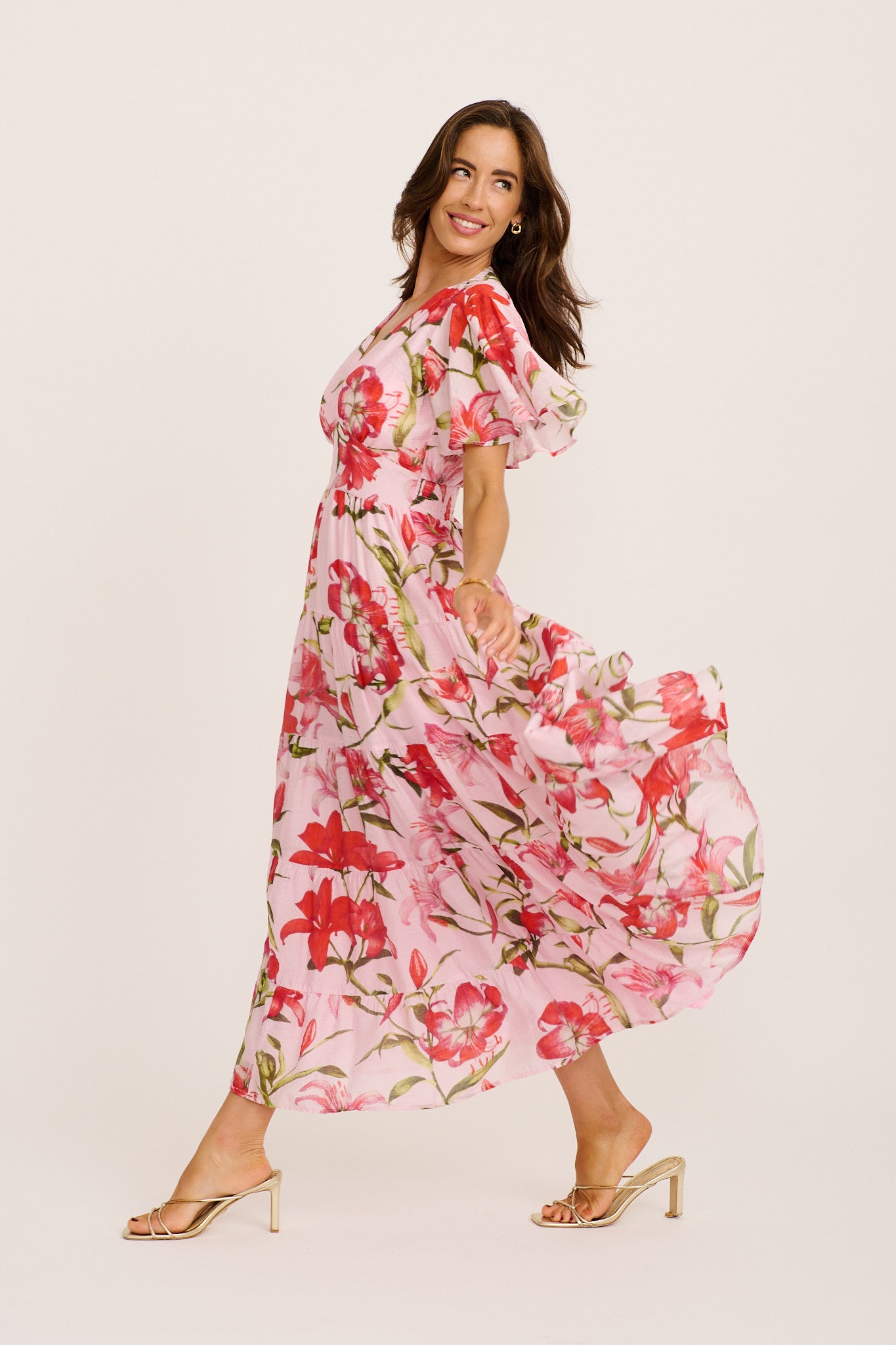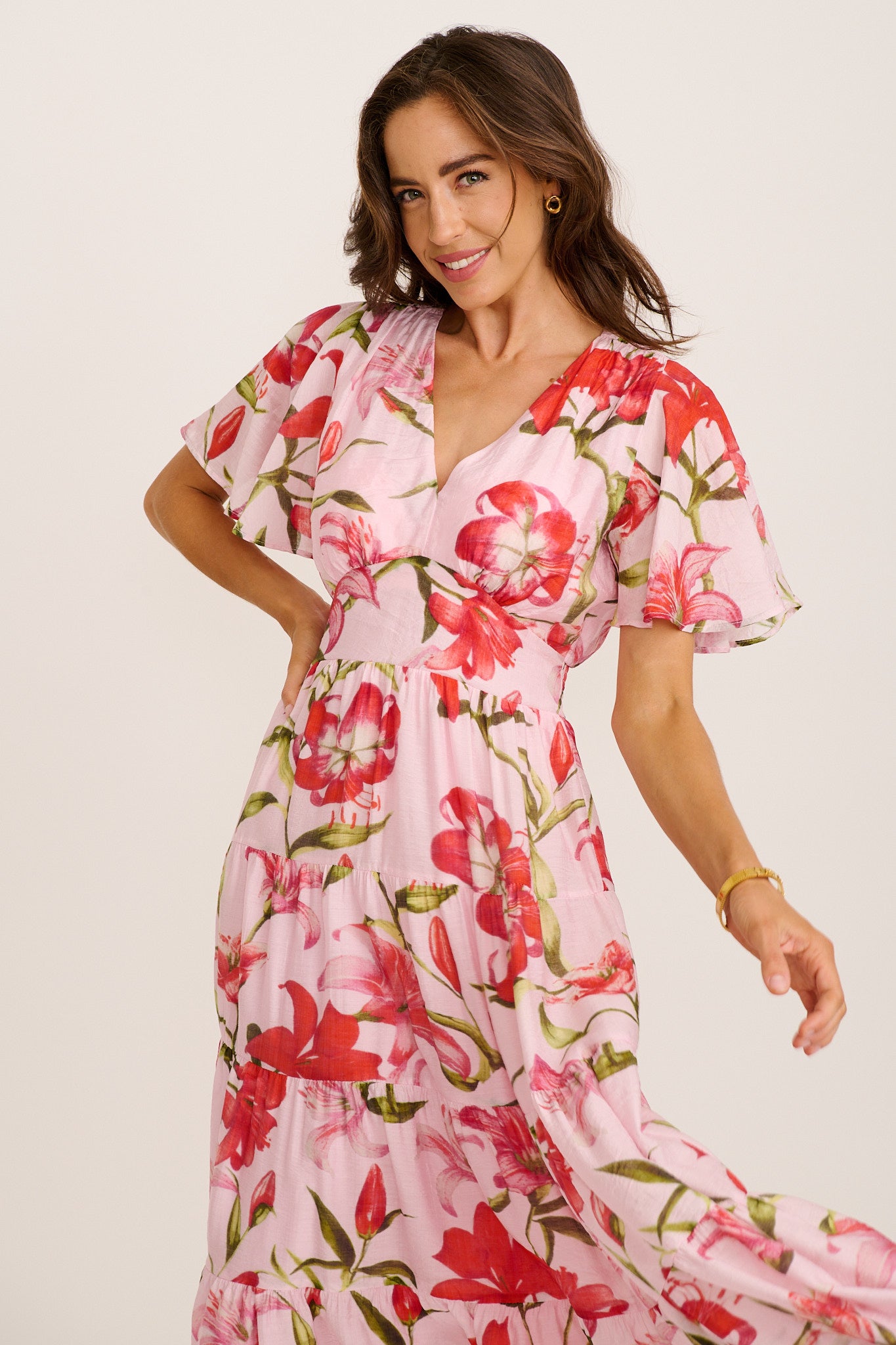Float effortlessly through your next event in the Pastel Symphony Maxi Dress in Blush with Pink Floral – a beautifully feminine piece that’s perfect for garden weddings, engagement parties or springtime celebrations. With its soft pastel tones and painterly floral print, this dress brings just the right balance of elegance and ease.