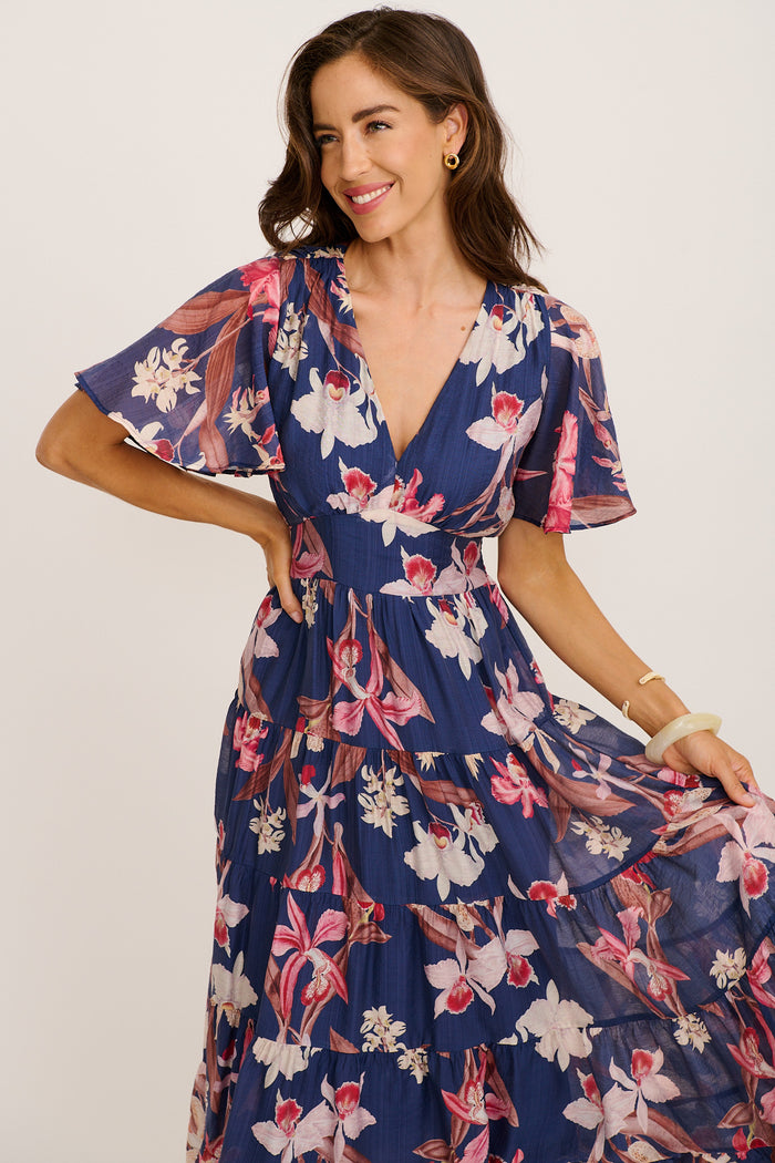 Pastel Symphony Maxi Dress in Navy Multi Floral