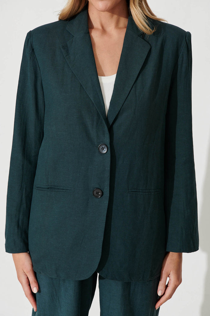 Pevita Blazer In Emerald Cotton Linen