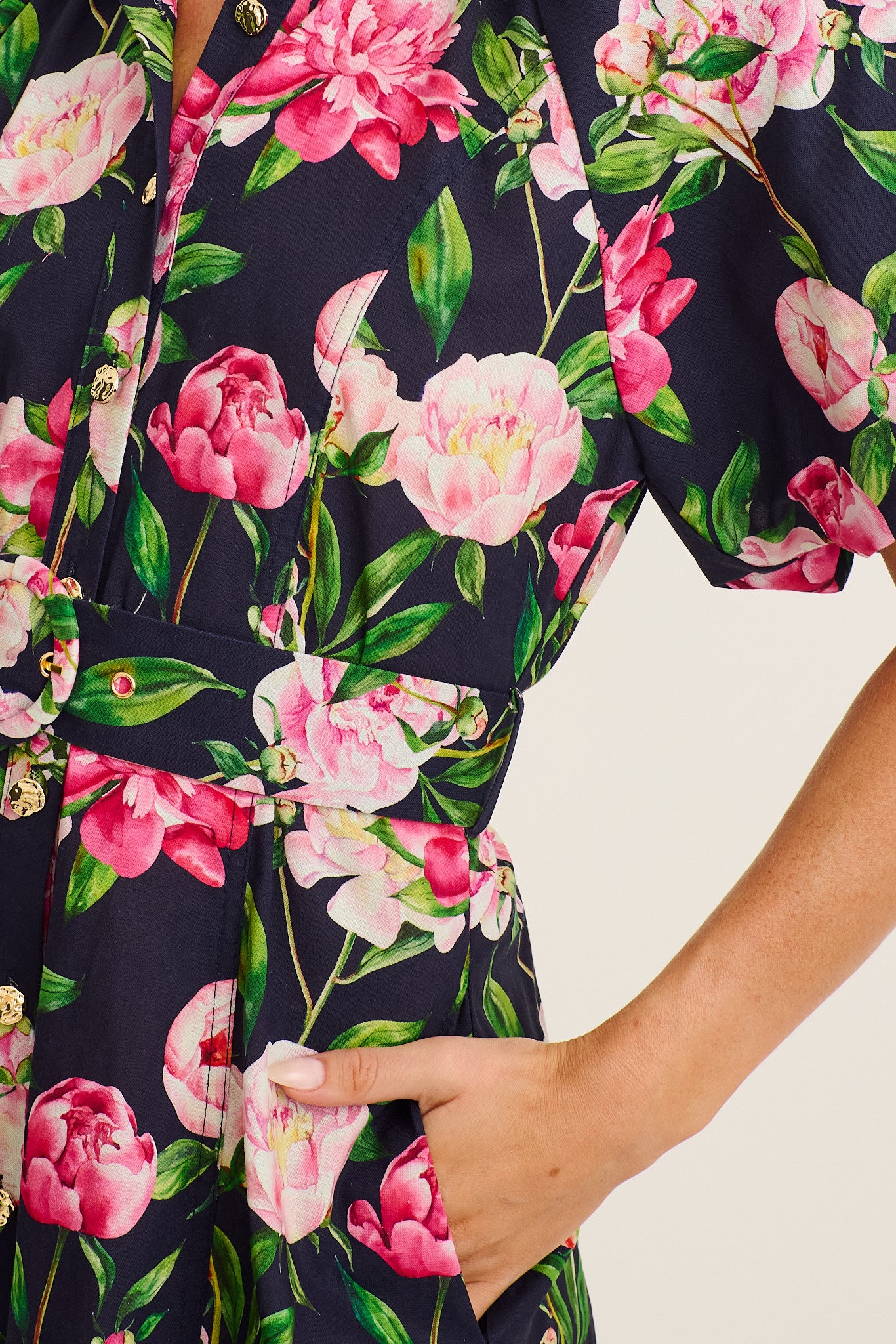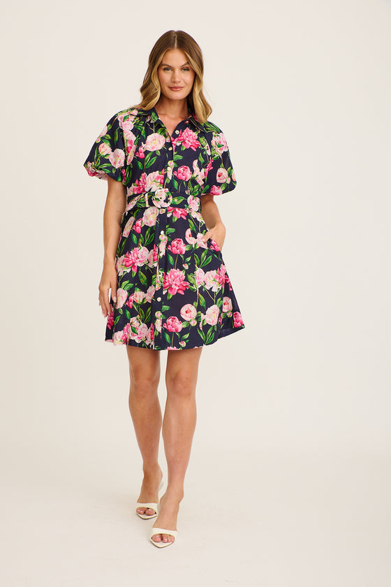 Poetic Glow Shirt Dress in Navy with Blush Floral Cotton