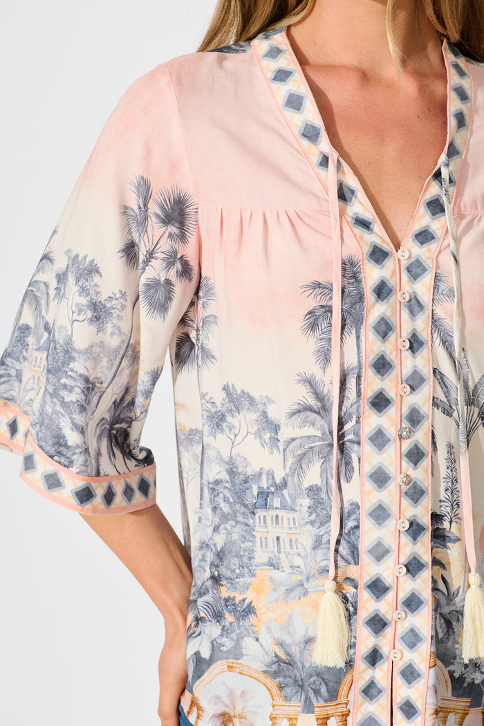 Portobello Top in Blush Palm Tree Print