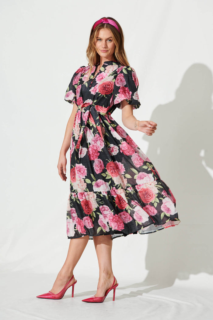 Get ready for all the compliments when you are wear our Portofino Midi Dress. Made from a cotton blend, this dress features a detachable waist tie, puffy sleeves and a button up front. Perfect for Sunday adventures and picnics with the family.