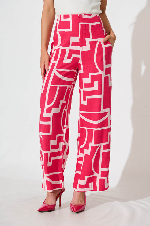 Posy Pant In Pink With Pink Print Linen Blend