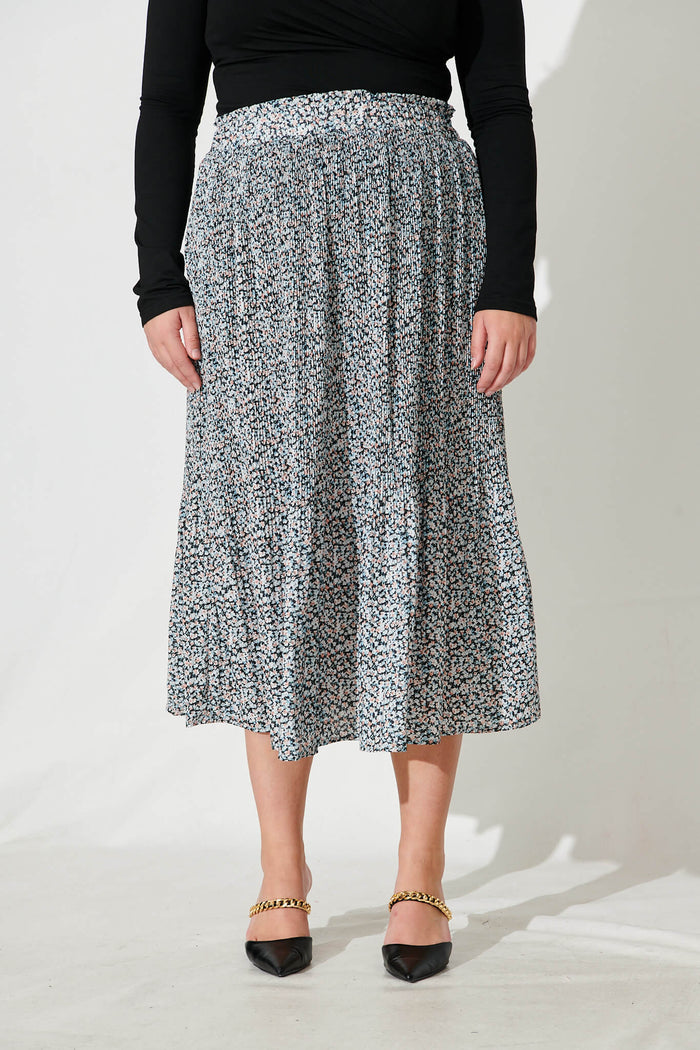 Pretty Woman Pleat Skirt in Black with Beige Ditsy Floral