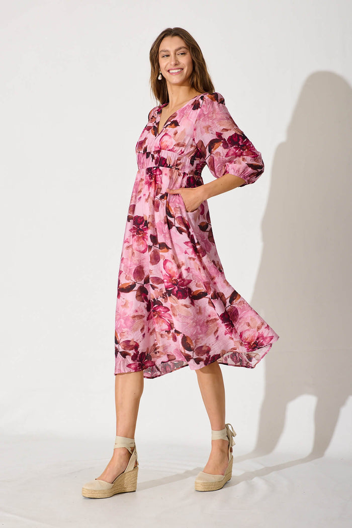 This season is all about the statement sleeve, and our Promises Midi Dress will not disappoint. It's the perfect ensemble to wear to your next event to make sure you will stand out from the crowd! Wear yours with simple drop earrings and sleek stilettos and let the sleeves do the talking!