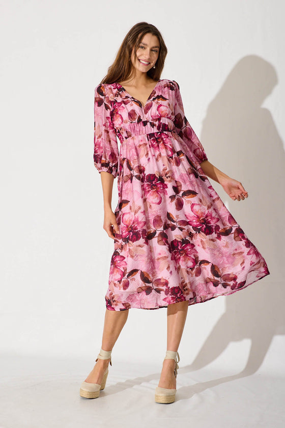 Promises Midi Dress In Pink And Plum Floral