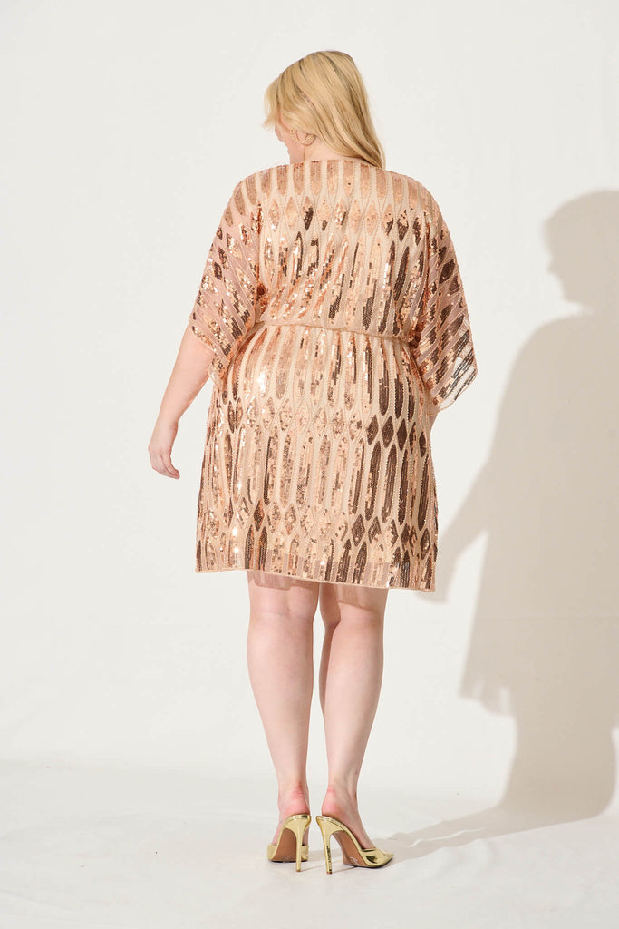 Channel timeless glamour with the Prosecco Sequin Dress in Rose Gold! This dress is crafted from a mid-weight, netted sequin fabric and is cut in a simple shift shape. Pair yours with minimal black heels and simple jewellery for a truly elegant look!