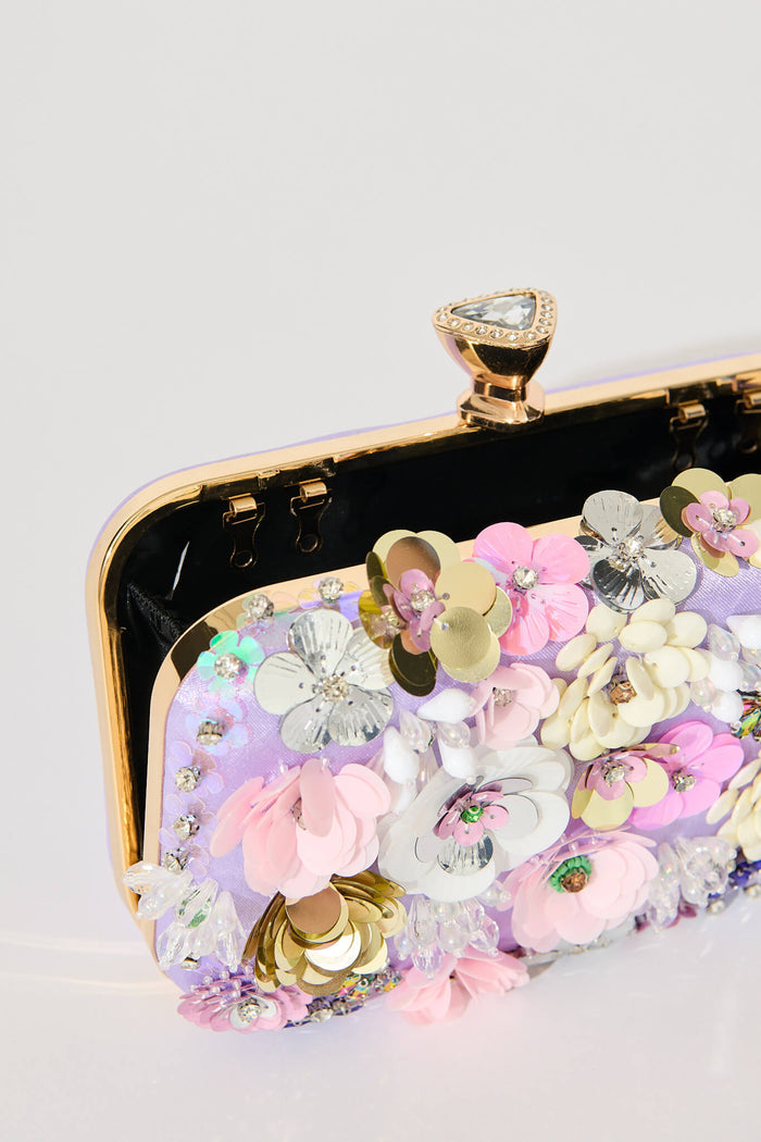 Quinn Clutch Bag in Lilac with 3D Multi Sequin Floral