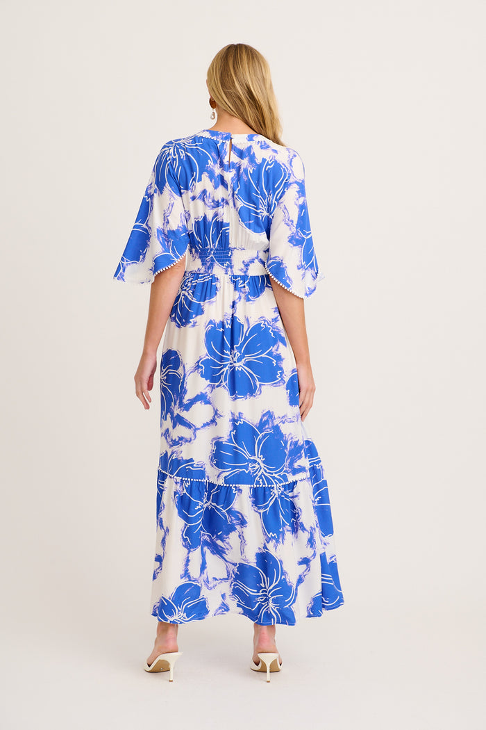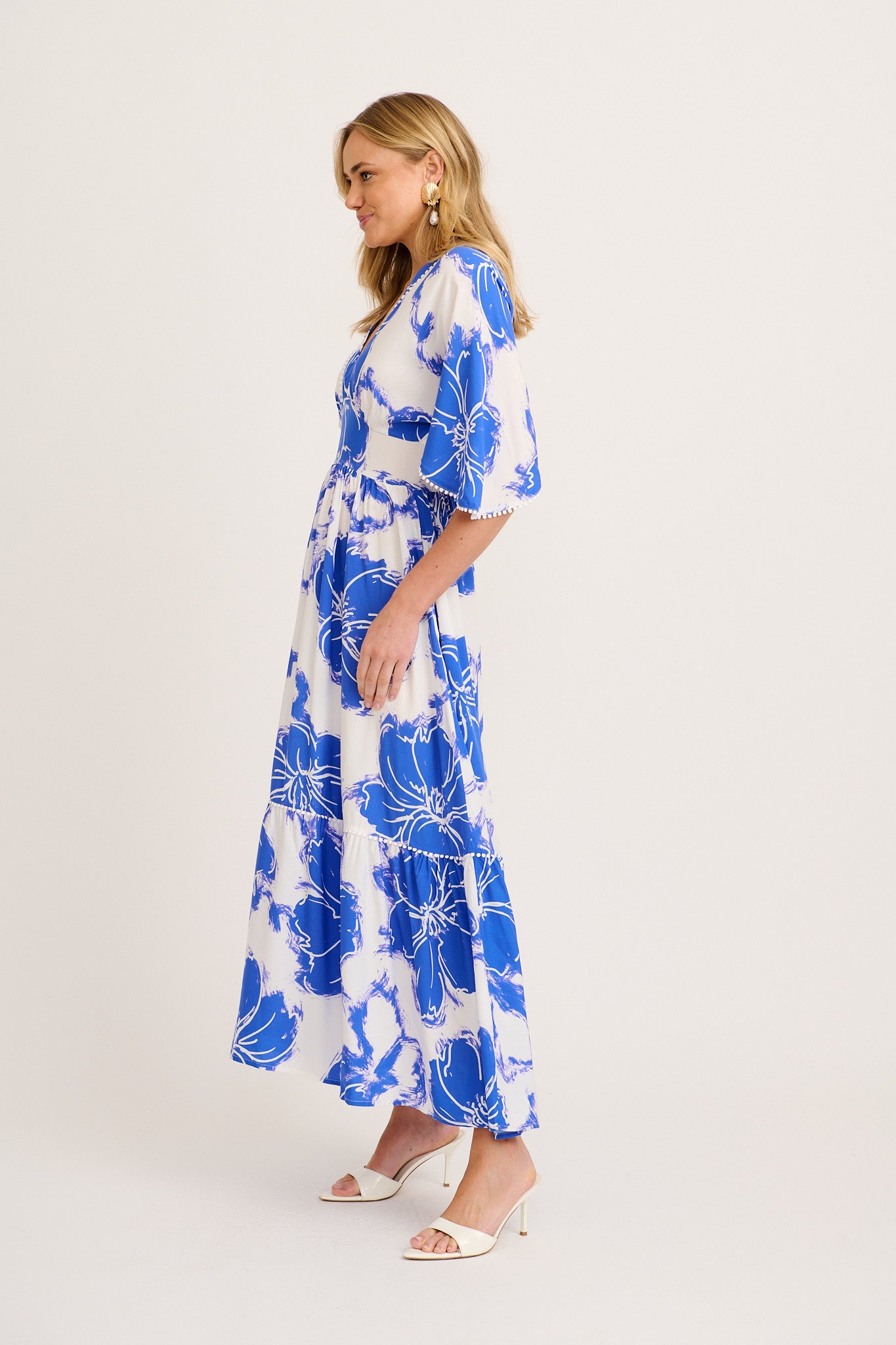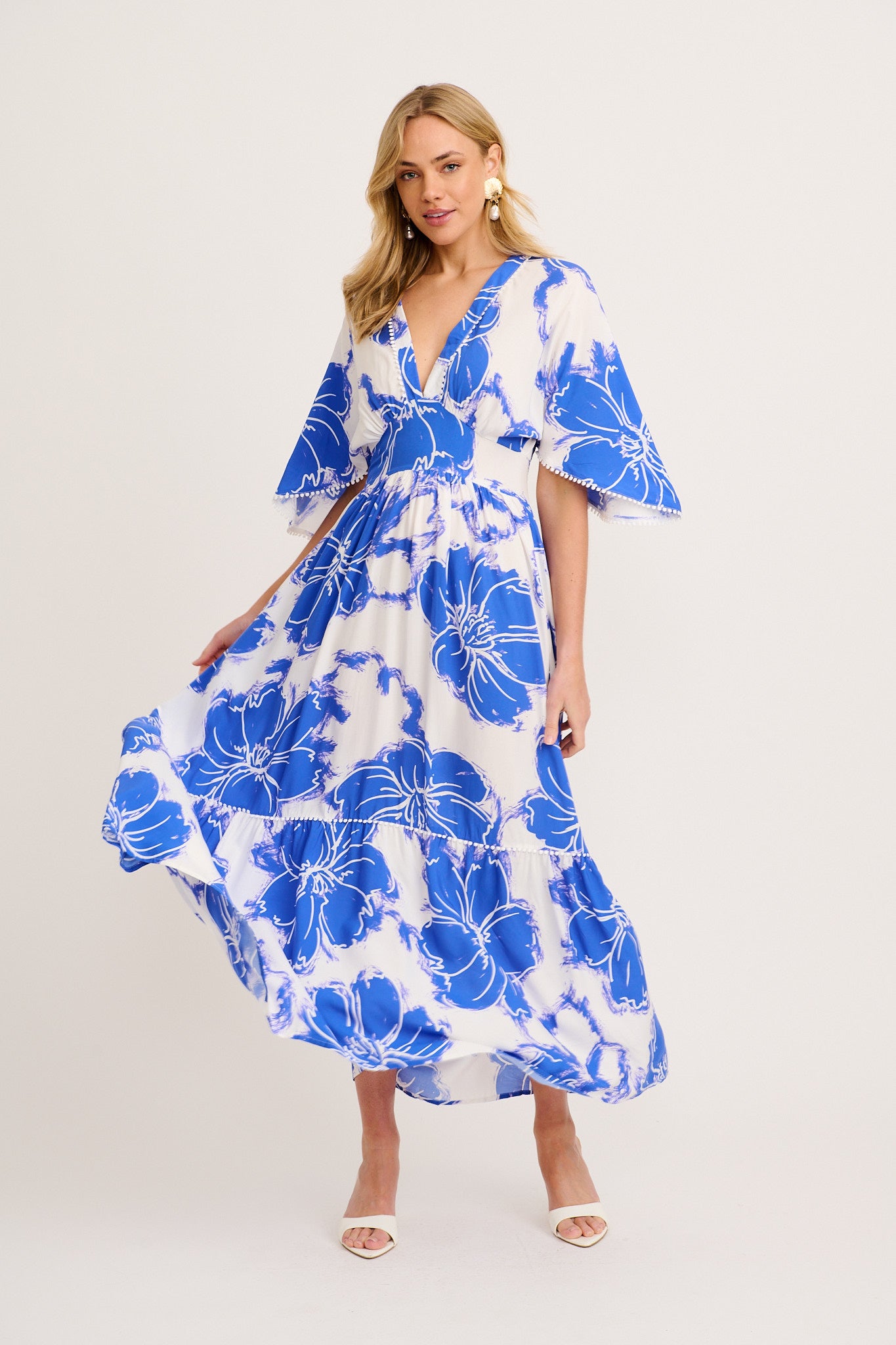 Light, breezy and effortlessly flattering — the Raelle Maxi Dress in Blue and White Floral is your go-to for sun-filled days and dreamy escapes. With its delicate floral print and lightweight, breathable rayon fabric, this dress is made for garden parties, beachside lunches or strolling through weekend markets.