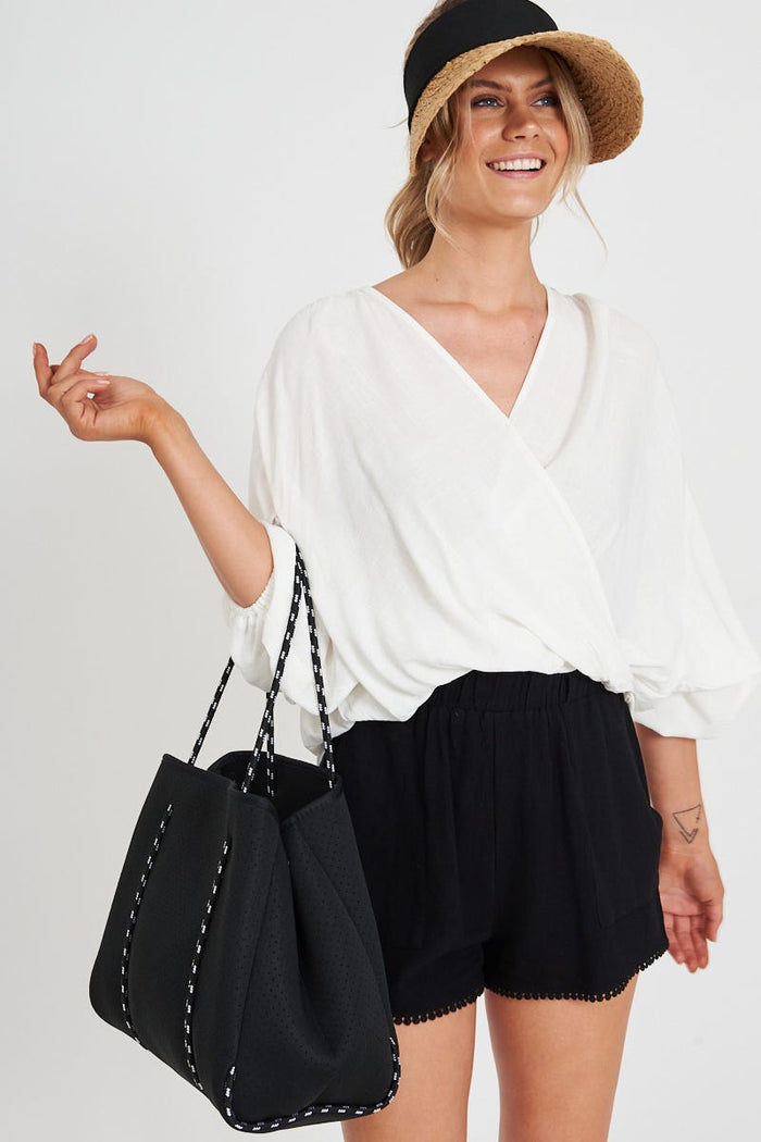 Our Rania Neoprene Tote Bag is super practical and stylish. Perfect for the girl on the run while looking your absolutel stylish self.