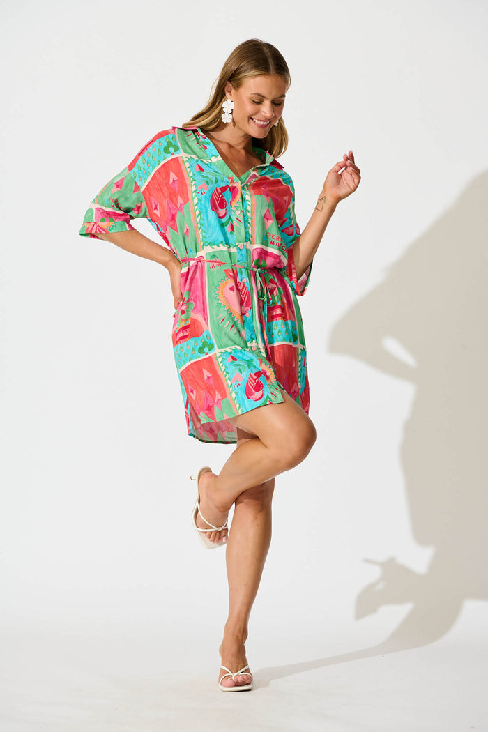 Raya Shirt Dress in Multi with Green Patchwork Print