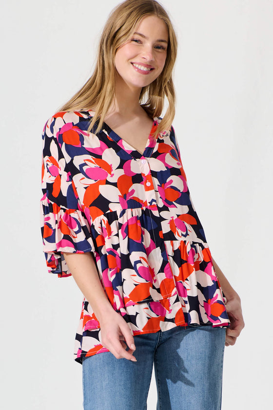 Keep your look sweet and easy with Our Relia Top! This girlie but pared-back top features a tiered smock silhouette with ruffles sleeves, a V-neckline button down. It’s so easy to style with denim, a shoulder bag and sandals for casual occasions or with heels for a dressier look!