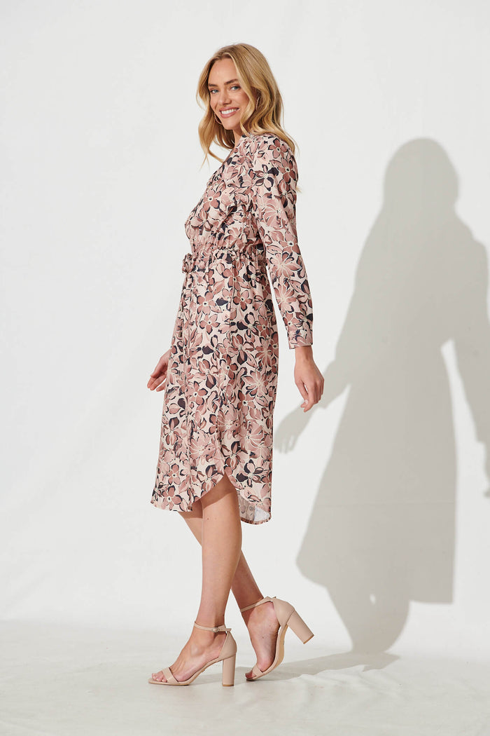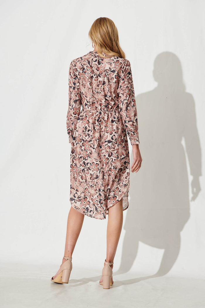 Rival Zip Dress In Mocha Floral