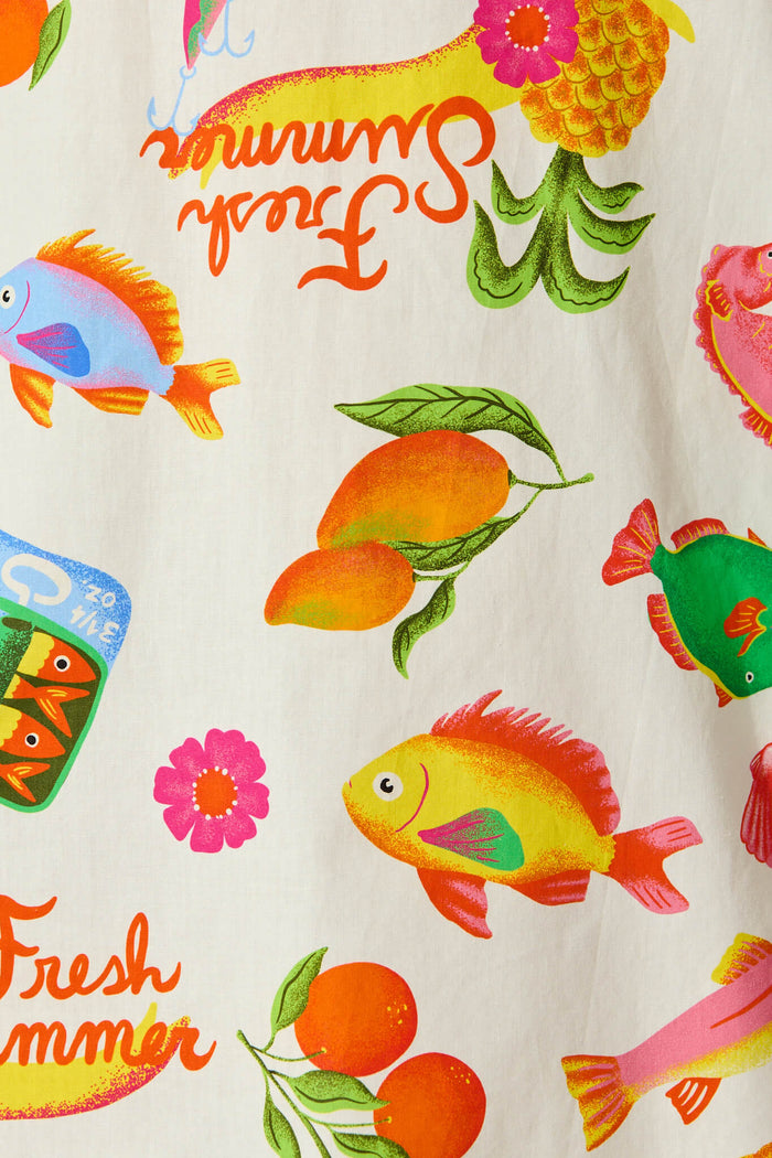 Rizzo Dress in White Multi Summer Print Cotton