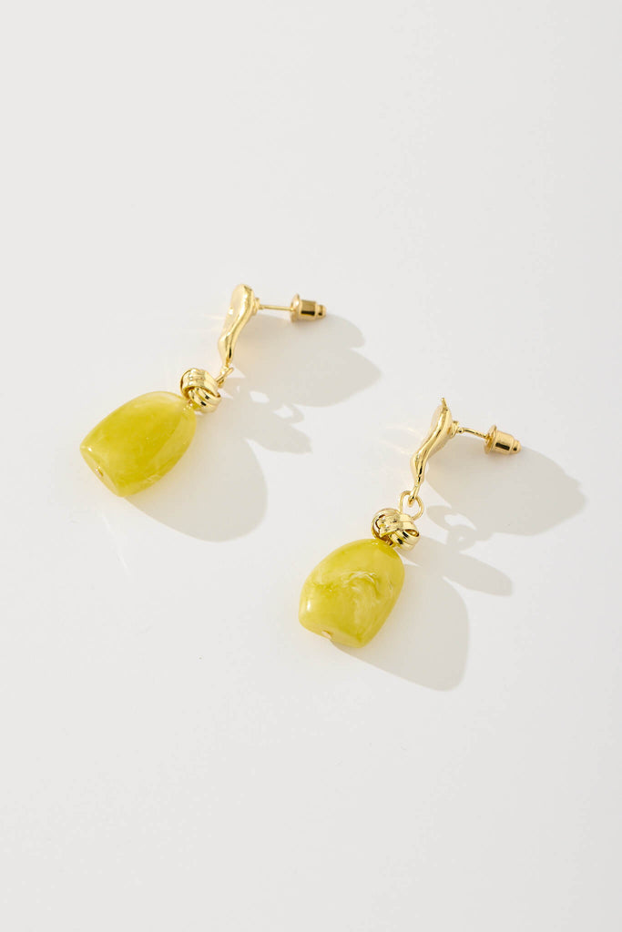 Amara Drop Earrings In Gold With Light Green