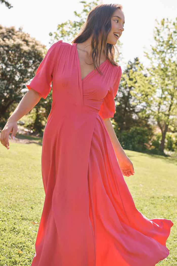 Ronda Maxi Wrap Dress In Pink