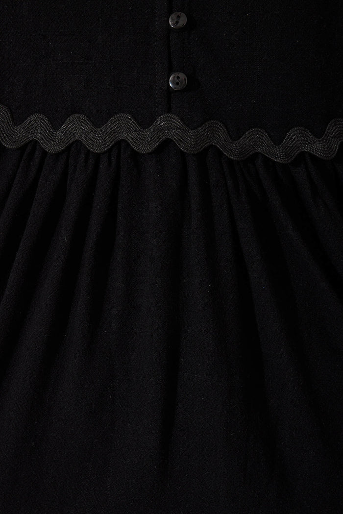 Rory Top In Black With Ric Rac Trim Linen Blend