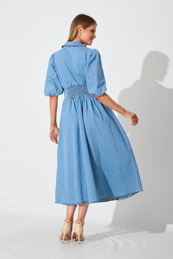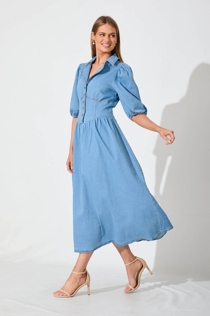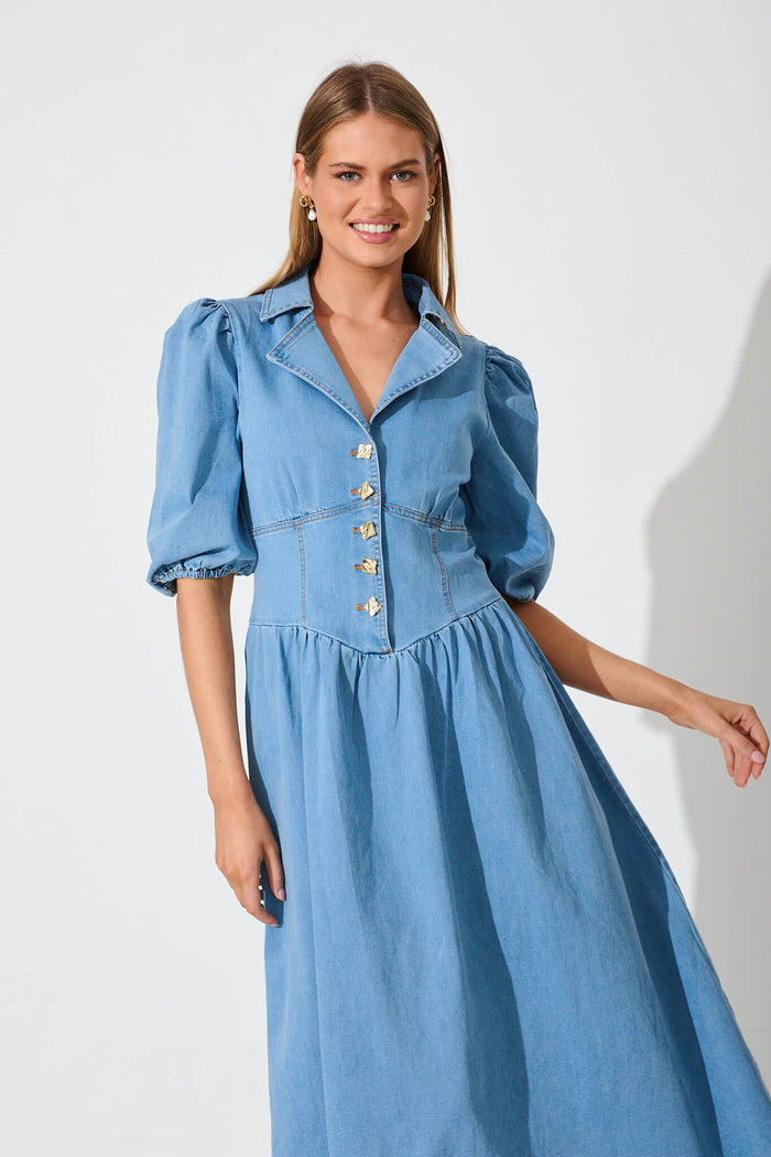 Roselyn Maxi Dress In Light Blue Denim
