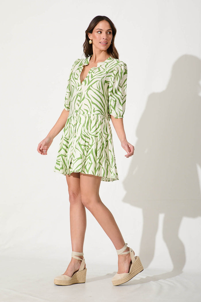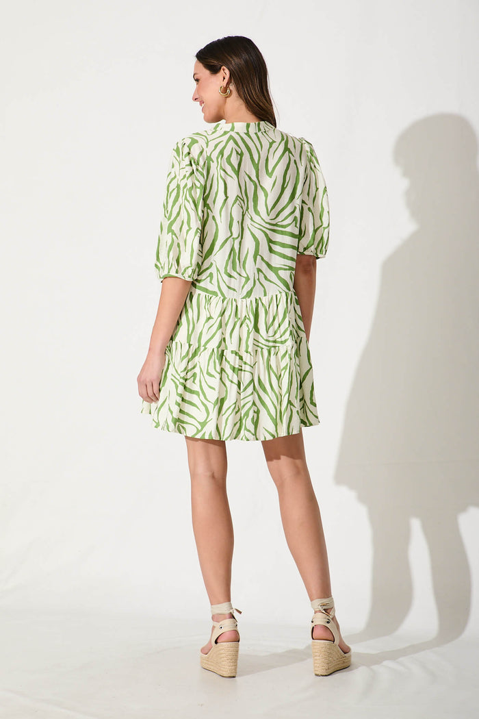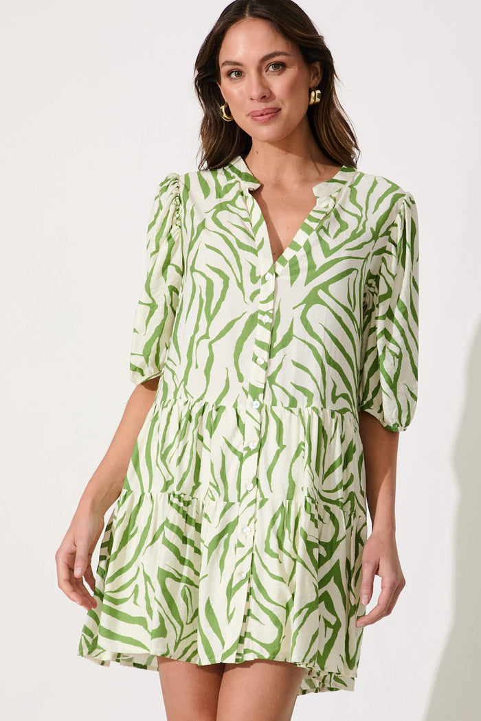 Sada Dress In Cream And Green Print