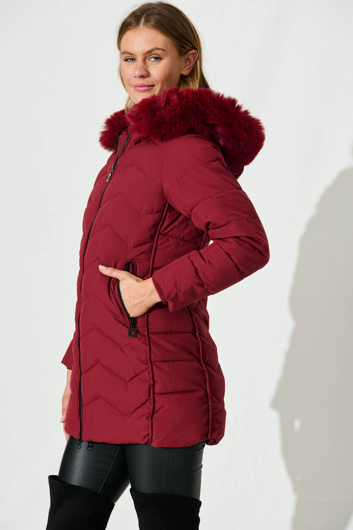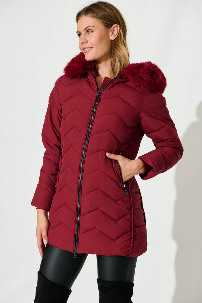 Stay warm and cosy this winter in our Salzburg Puffer Jacket. Featuring a statement faux fur trim hood, zip twin front pockets and a zip front opening. Add the ultimate layering piece this season to your wardrobe!