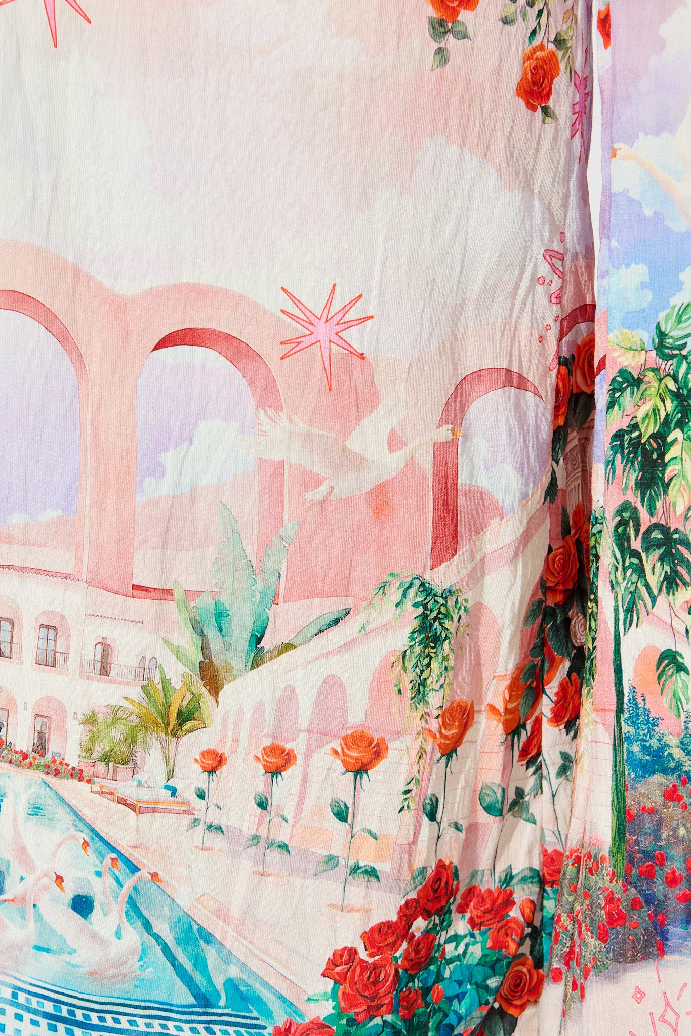 Make a statement in the Sandcastle Jumpsuit in Red Rose Conversational Print. Designed for sunny days and balmy nights, this eye-catching piece pairs a vibrant red rose print with a relaxed silhouette, making it the perfect mix of playful and chic.