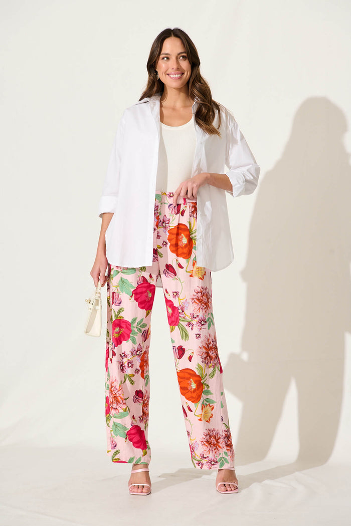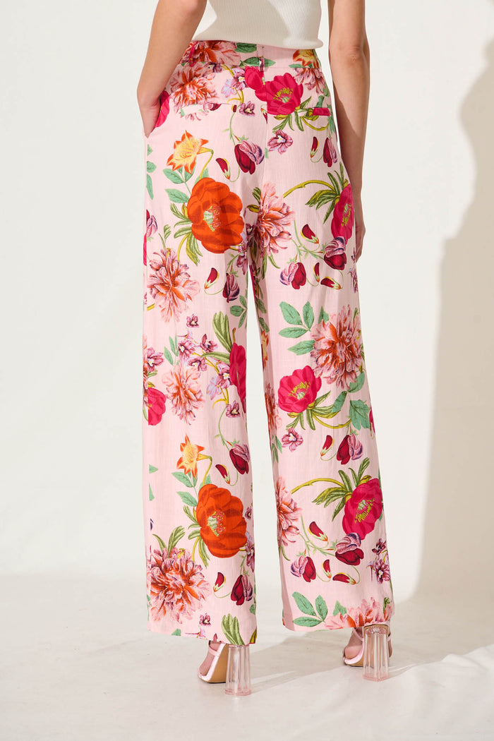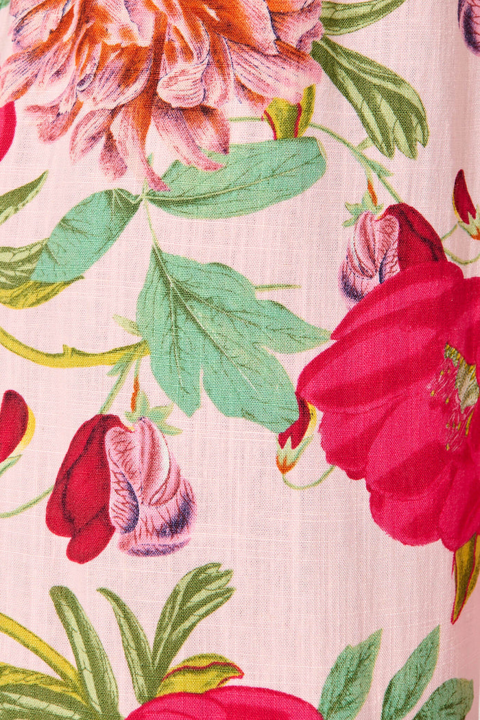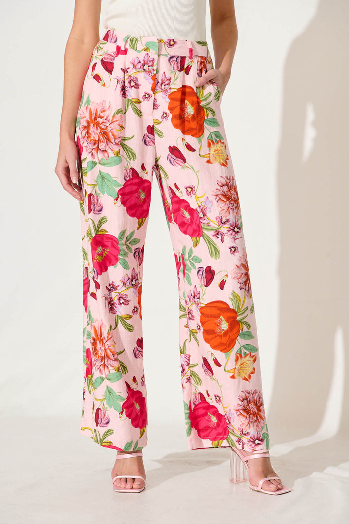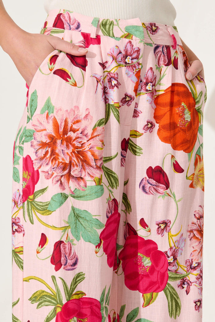 Santana Pant In Pink With Bright Floral Linen Blend