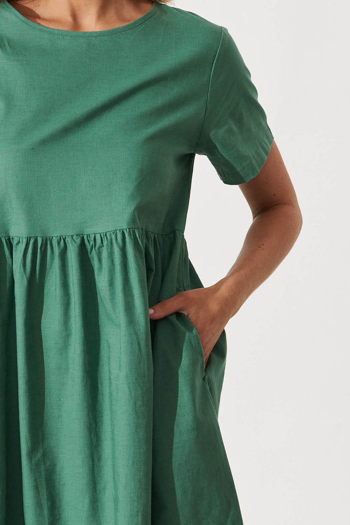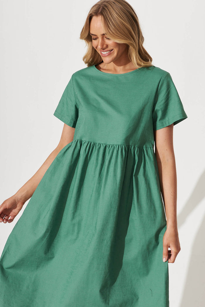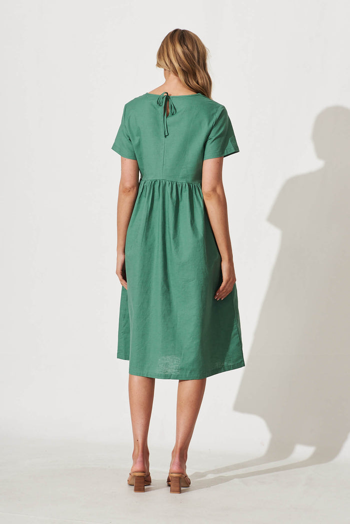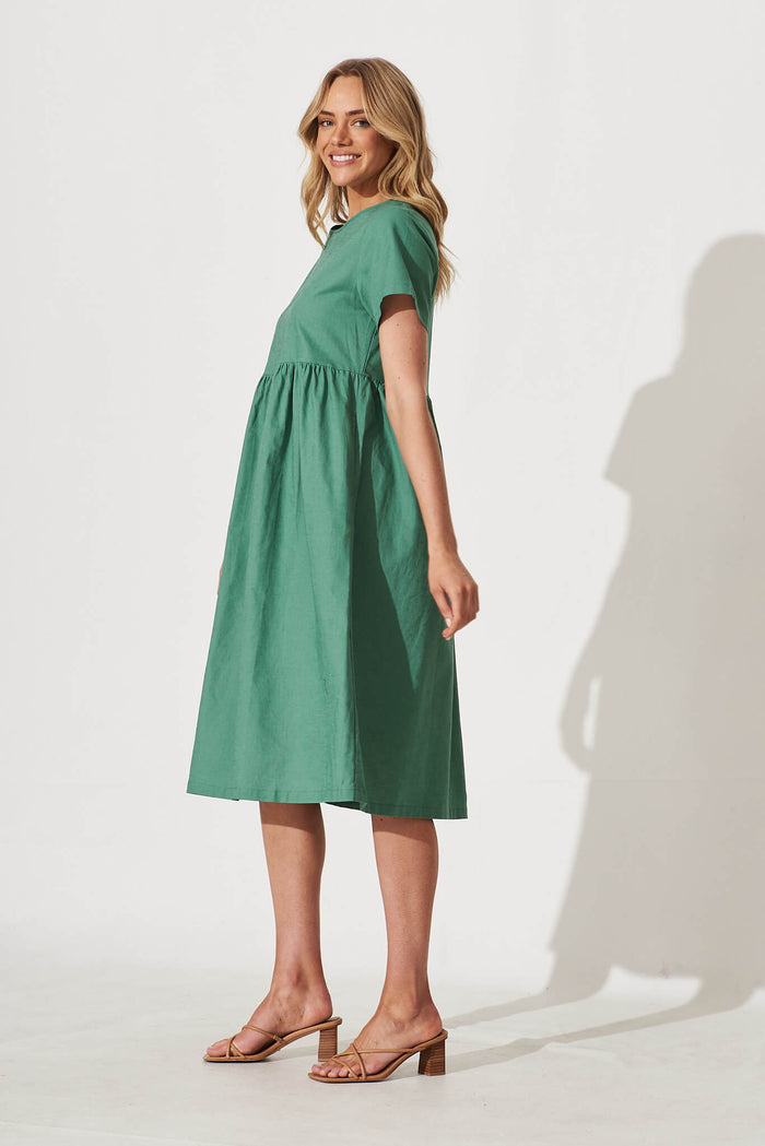 Seaside Midi Smock Dress In Sage Green Linen Cotton